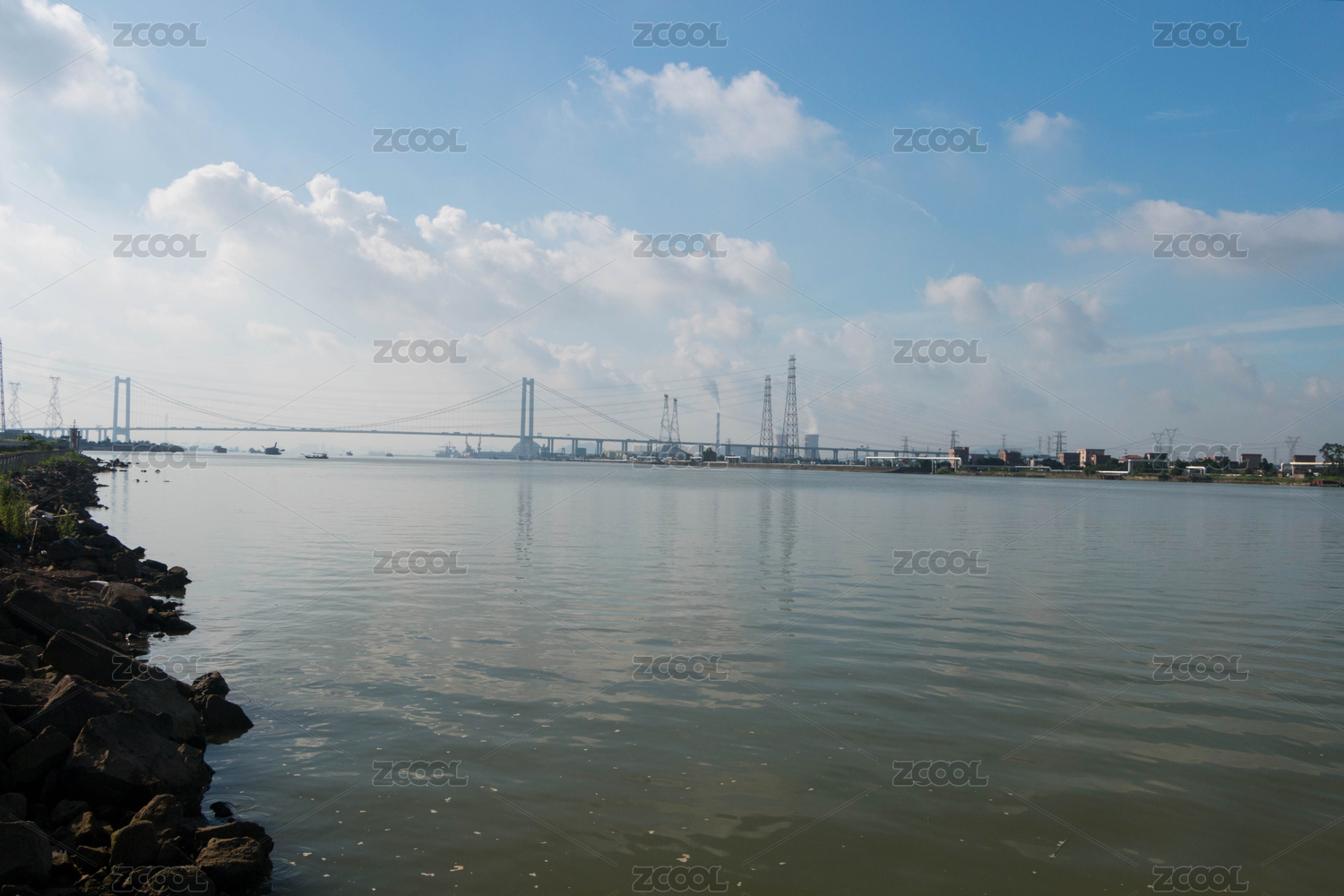 中国广东省珠海市沿海的现代城市建筑和海上交通贸易