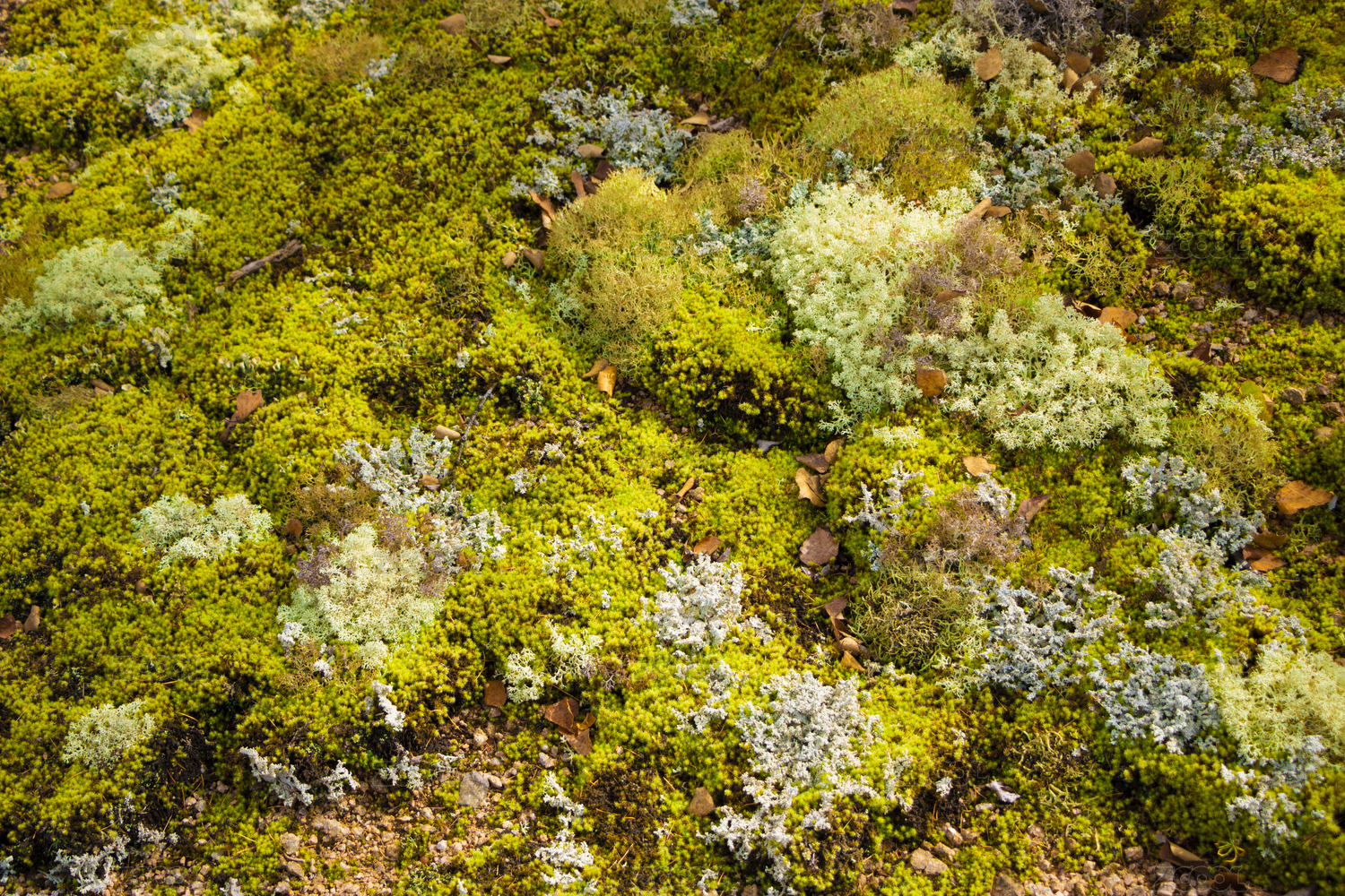 中国大兴安岭原始森林厚厚的苔藓层上的植物