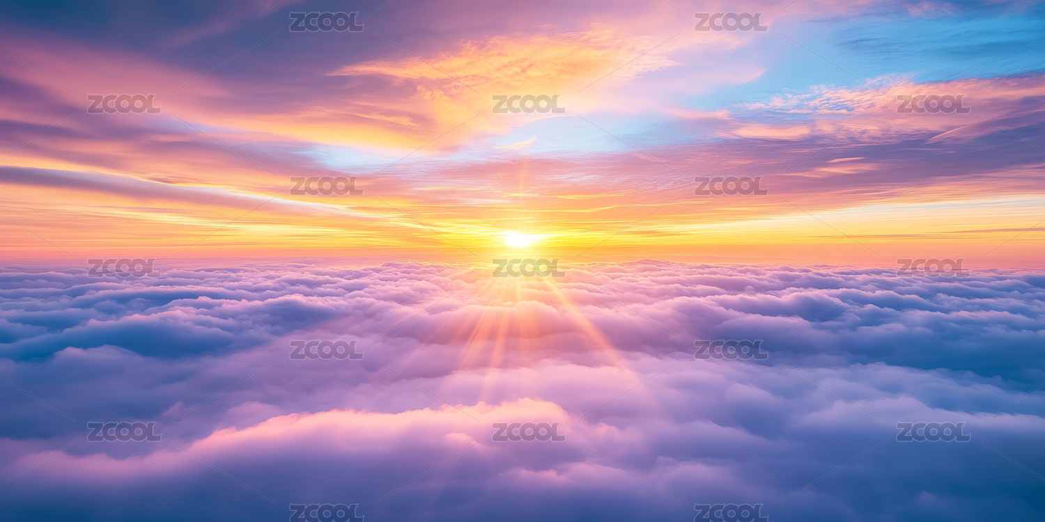 中国金色夕阳中的云海与贡嘎雪山横断山脉