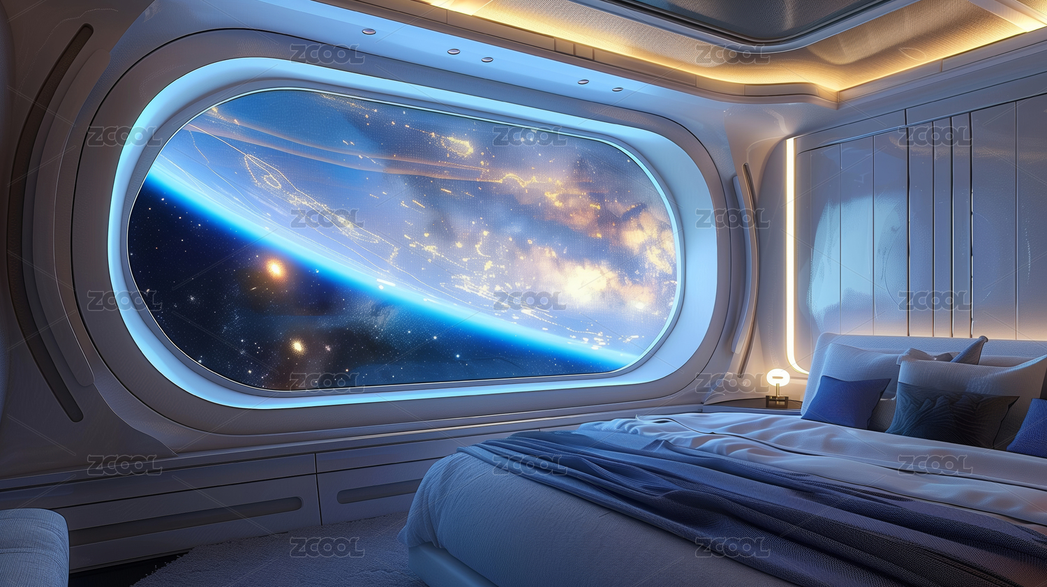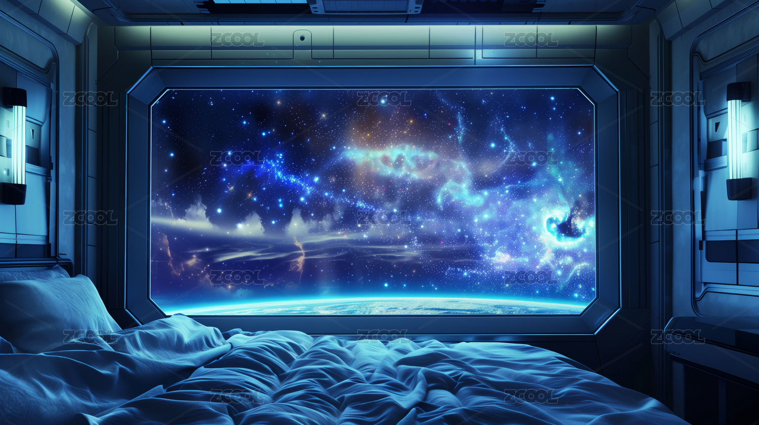 住房,概念,未来,旅游,温馨,床,遨游,外太空,星云,穿越