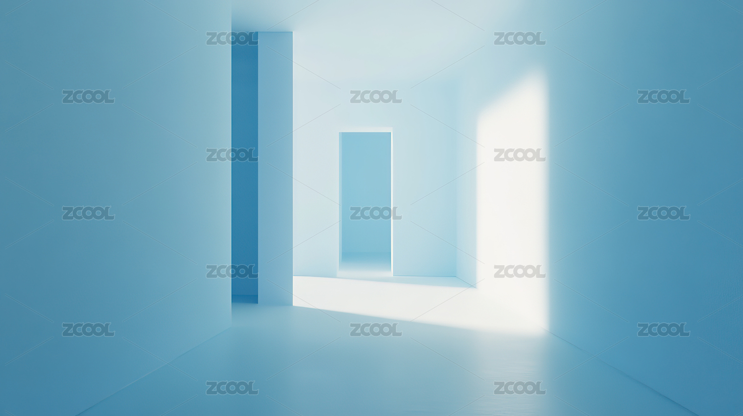 室内灰色墙壁映衬蓝色背景