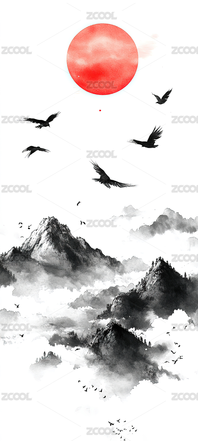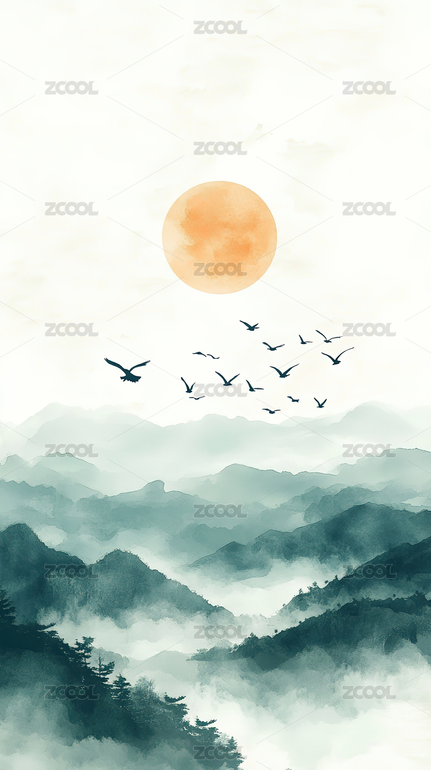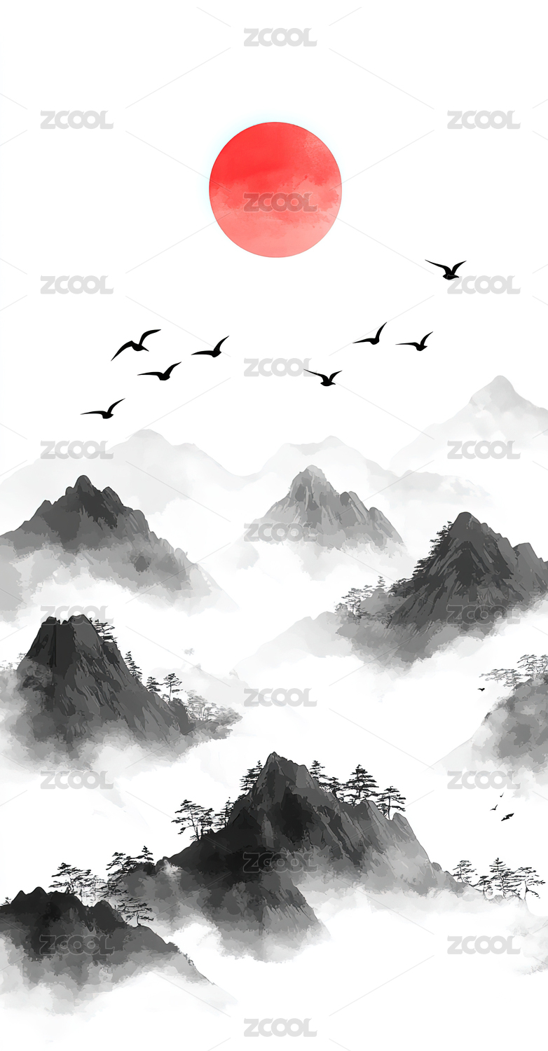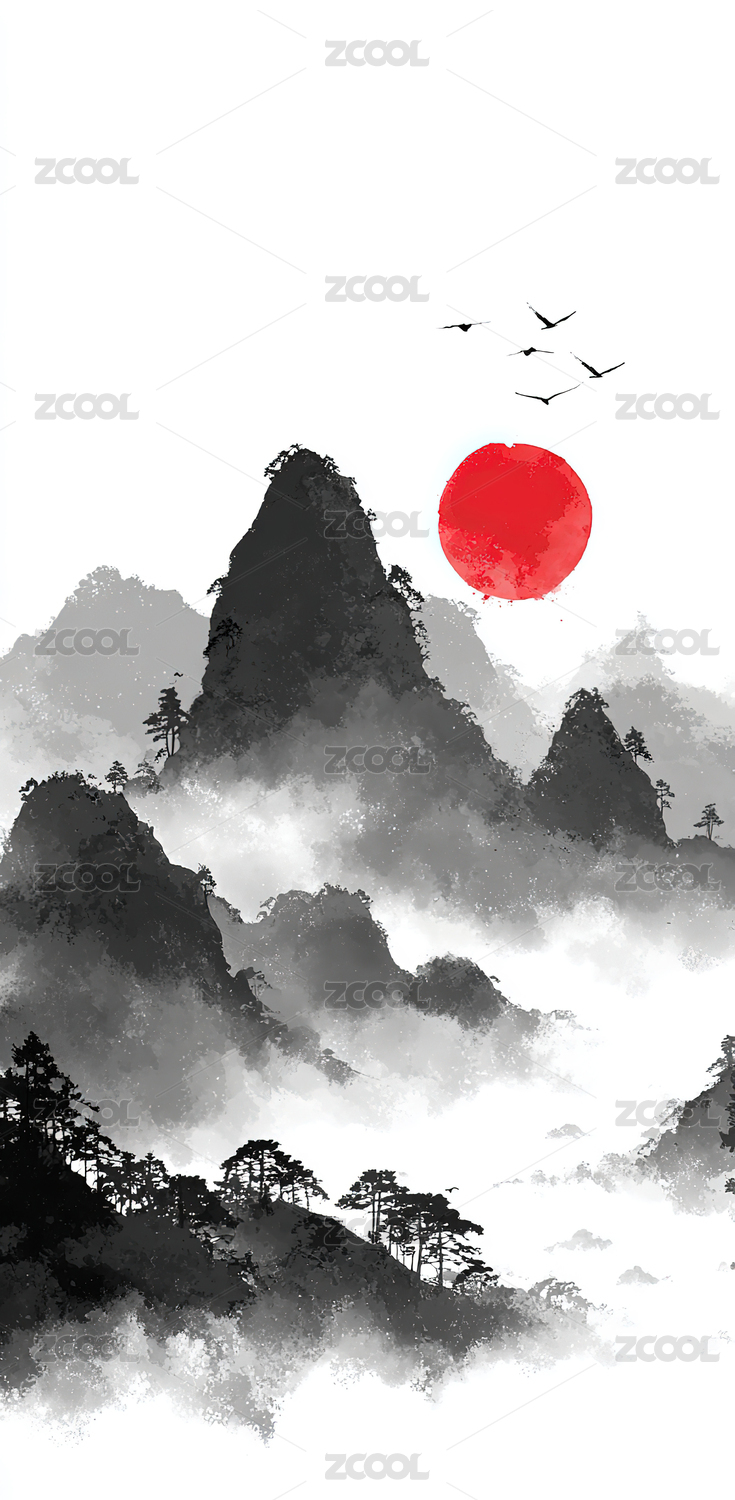 自然,中国画,风景,新中式风格,背景,水墨画,写意画,插画,中国文化,高山