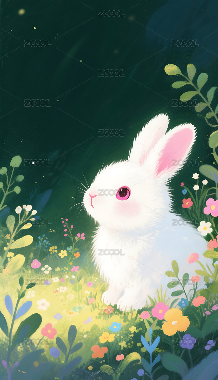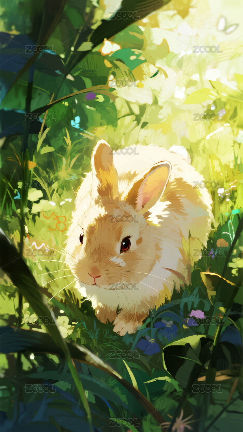 草丛里的兔子插画壁纸