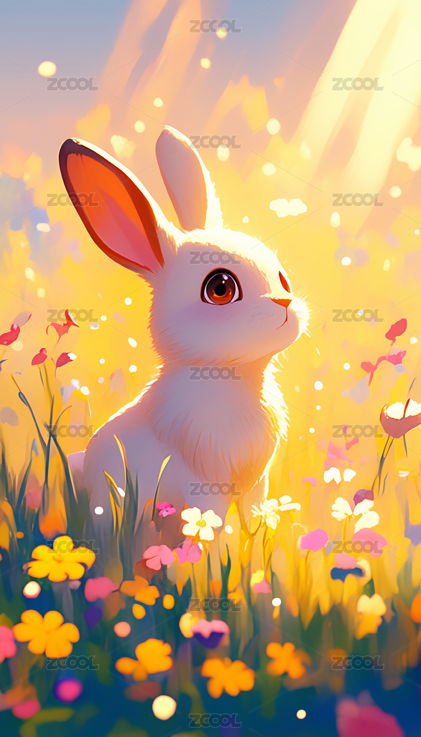 草地上的小白兔