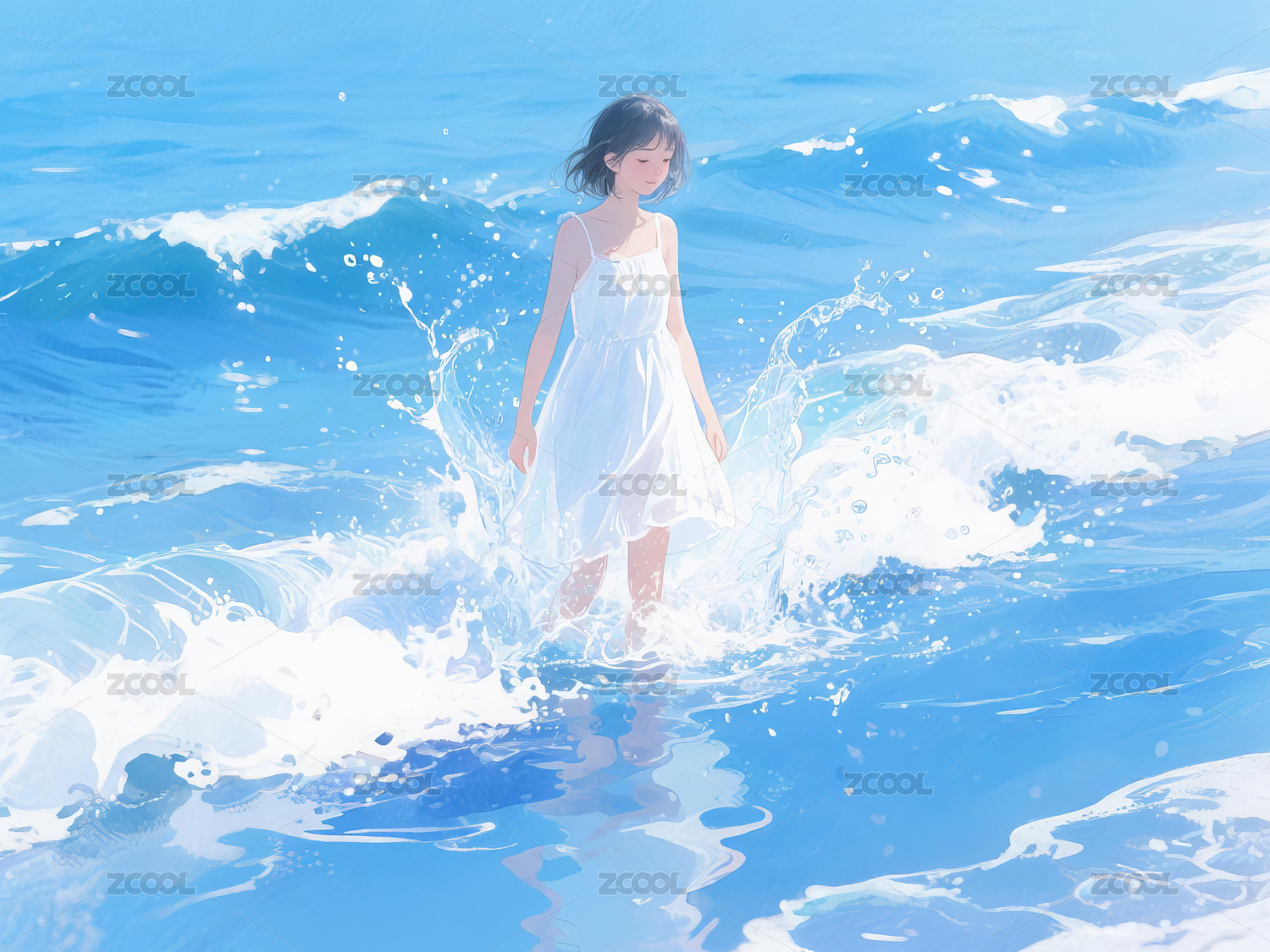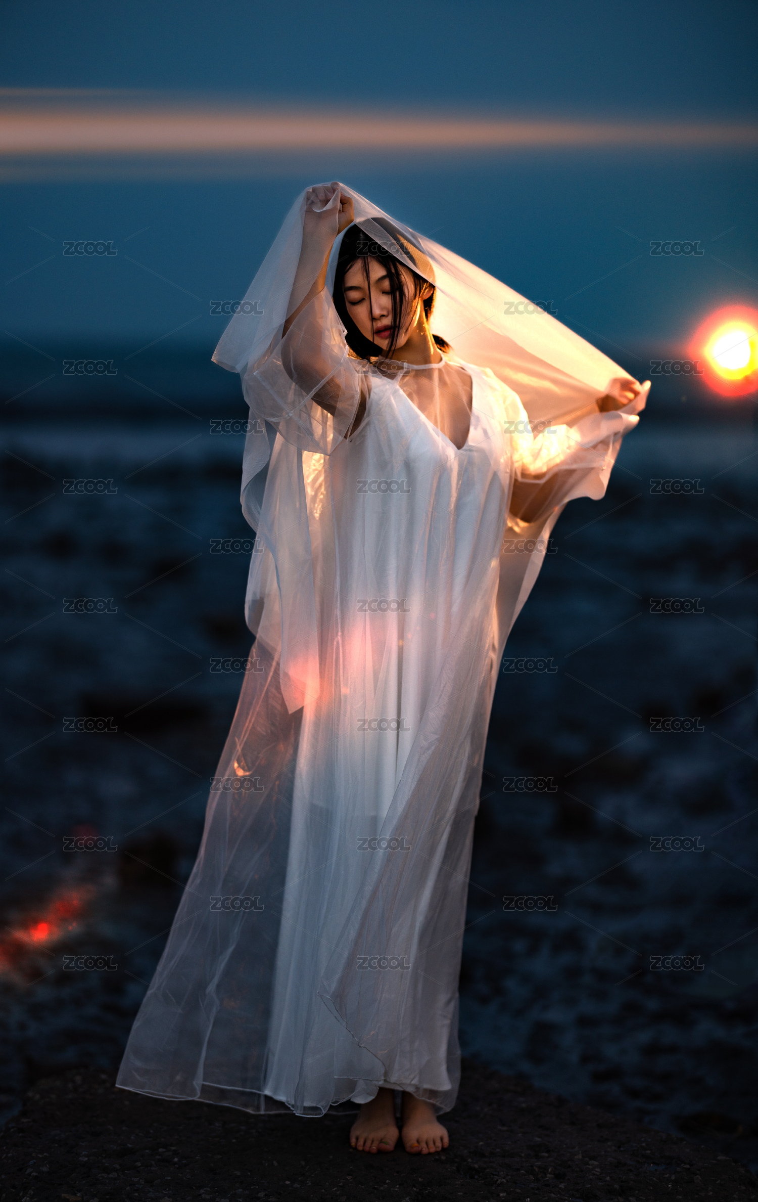 深蓝色调氛围美女穿星空裙美丽优雅时尚摄影