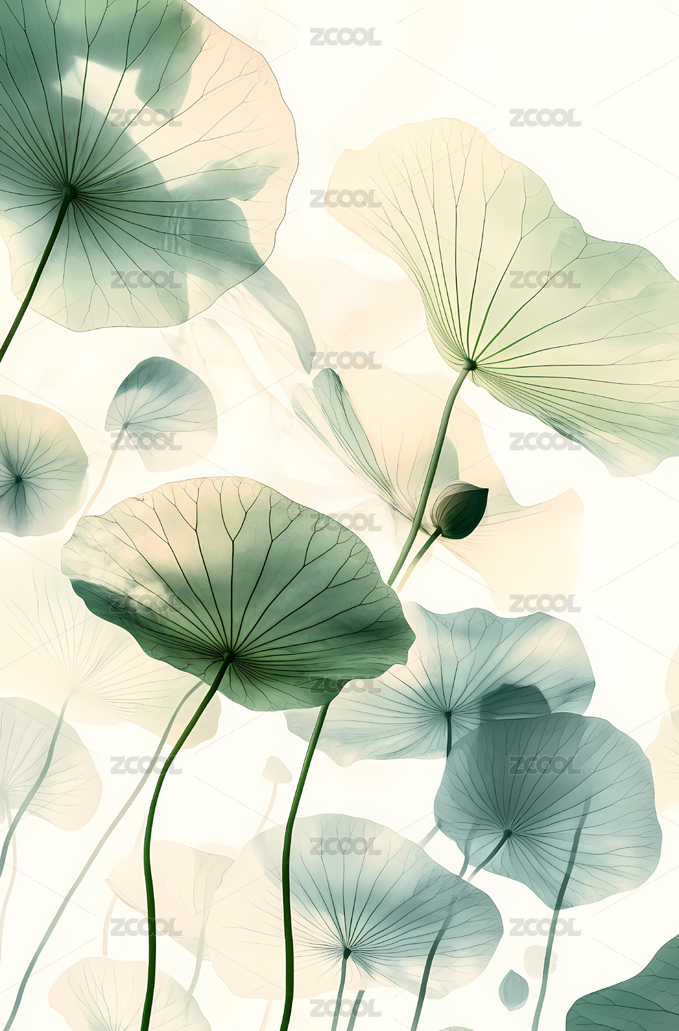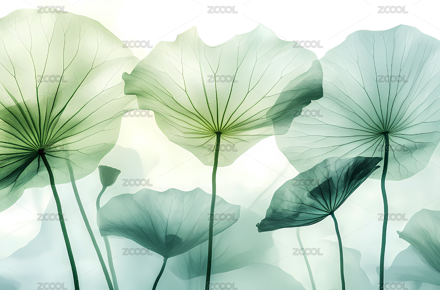 梦幻清透荷叶背景壁纸