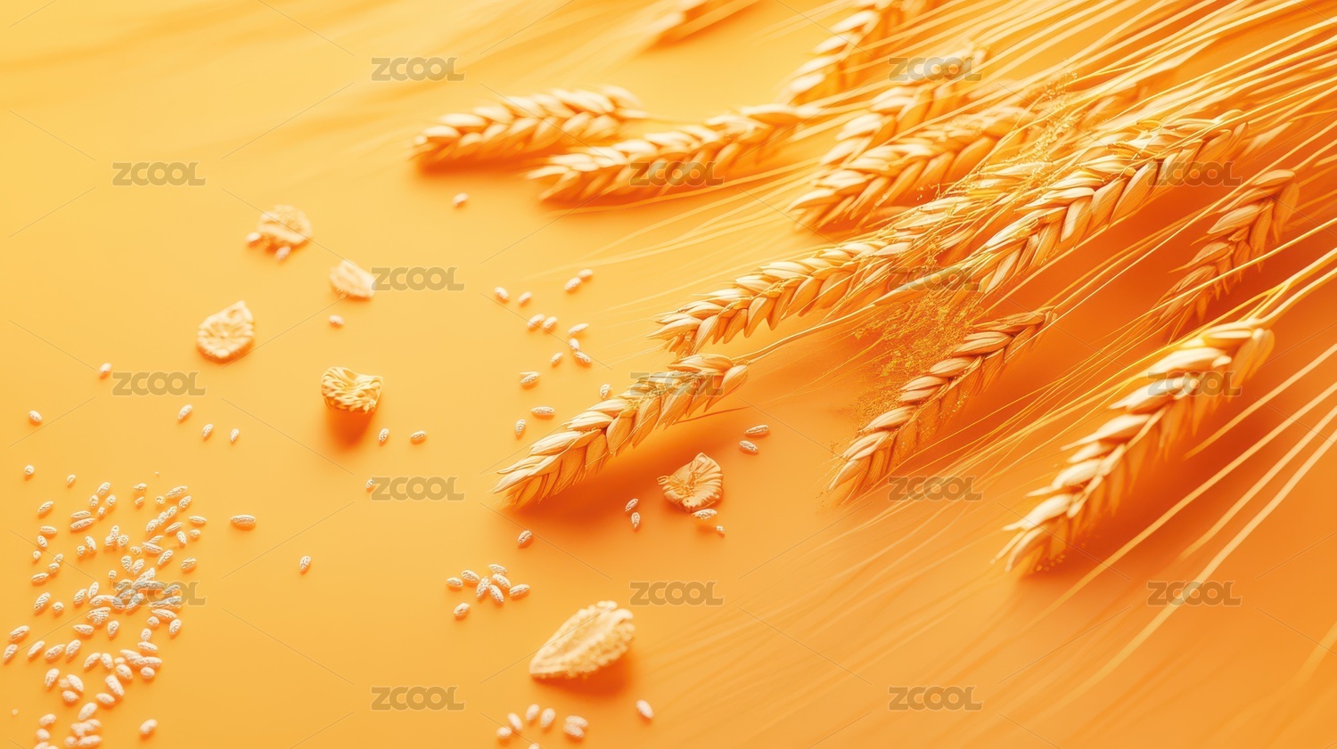 金黄麦穗在橙色背景中的生动展示