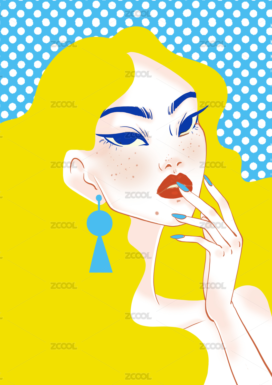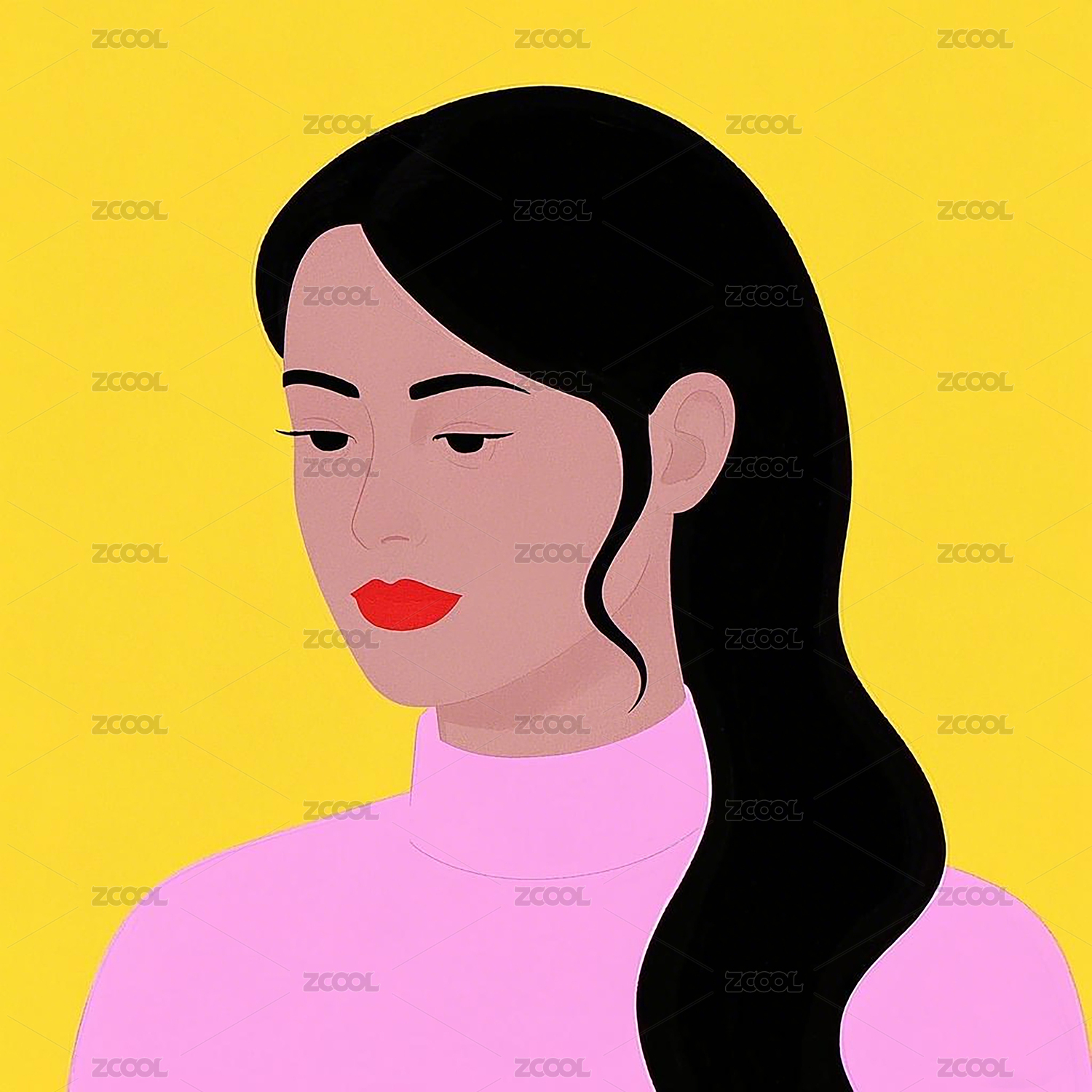 黄色少女时尚肖像大头照矢量扁平化设计背景