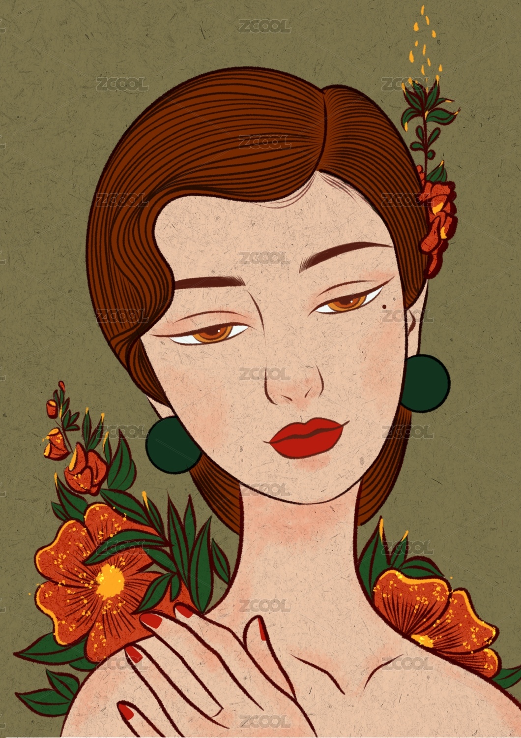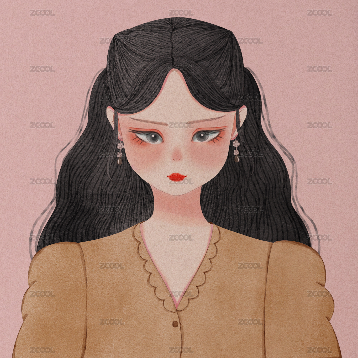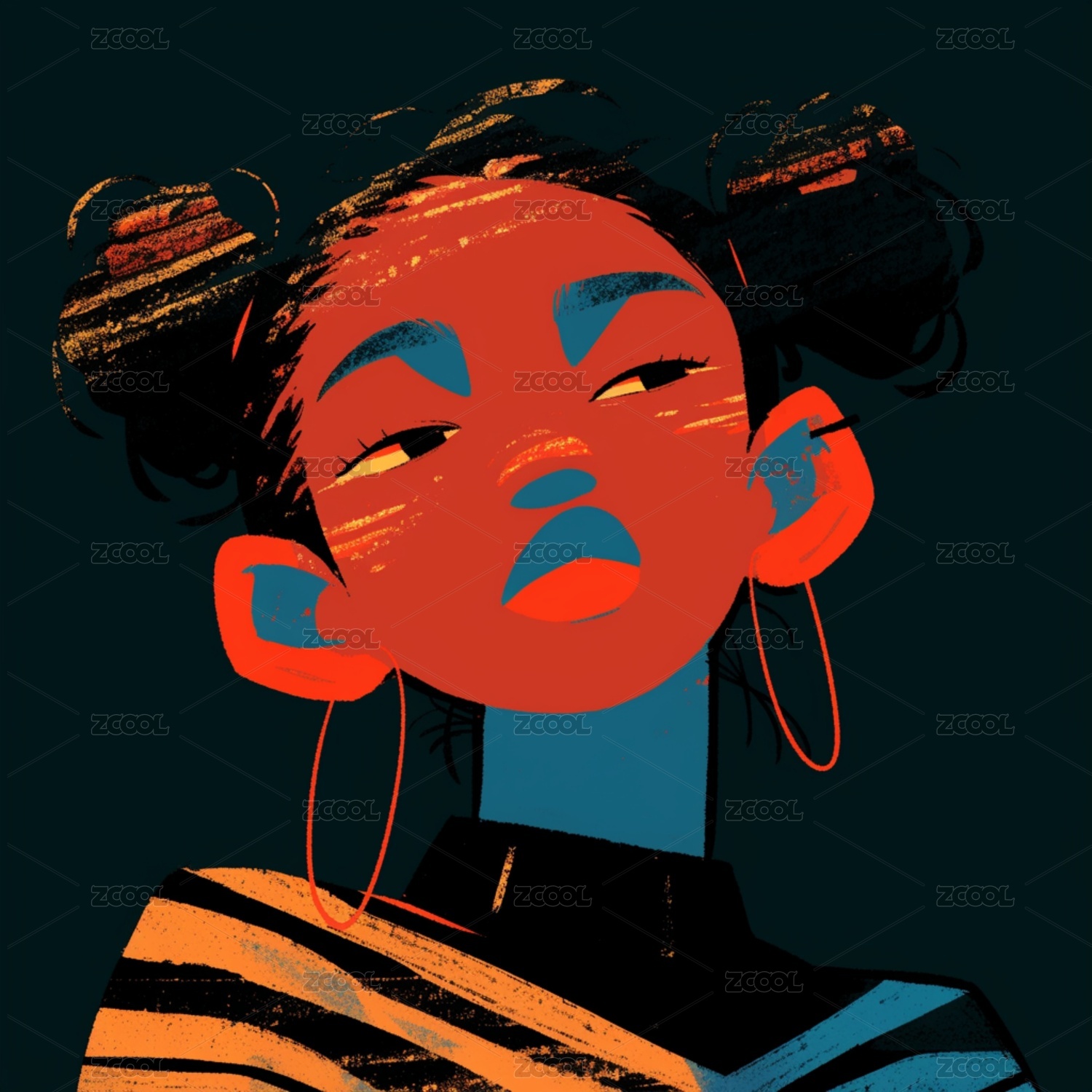 黑背景女时尚肖像大头照矢量扁平化设计背景