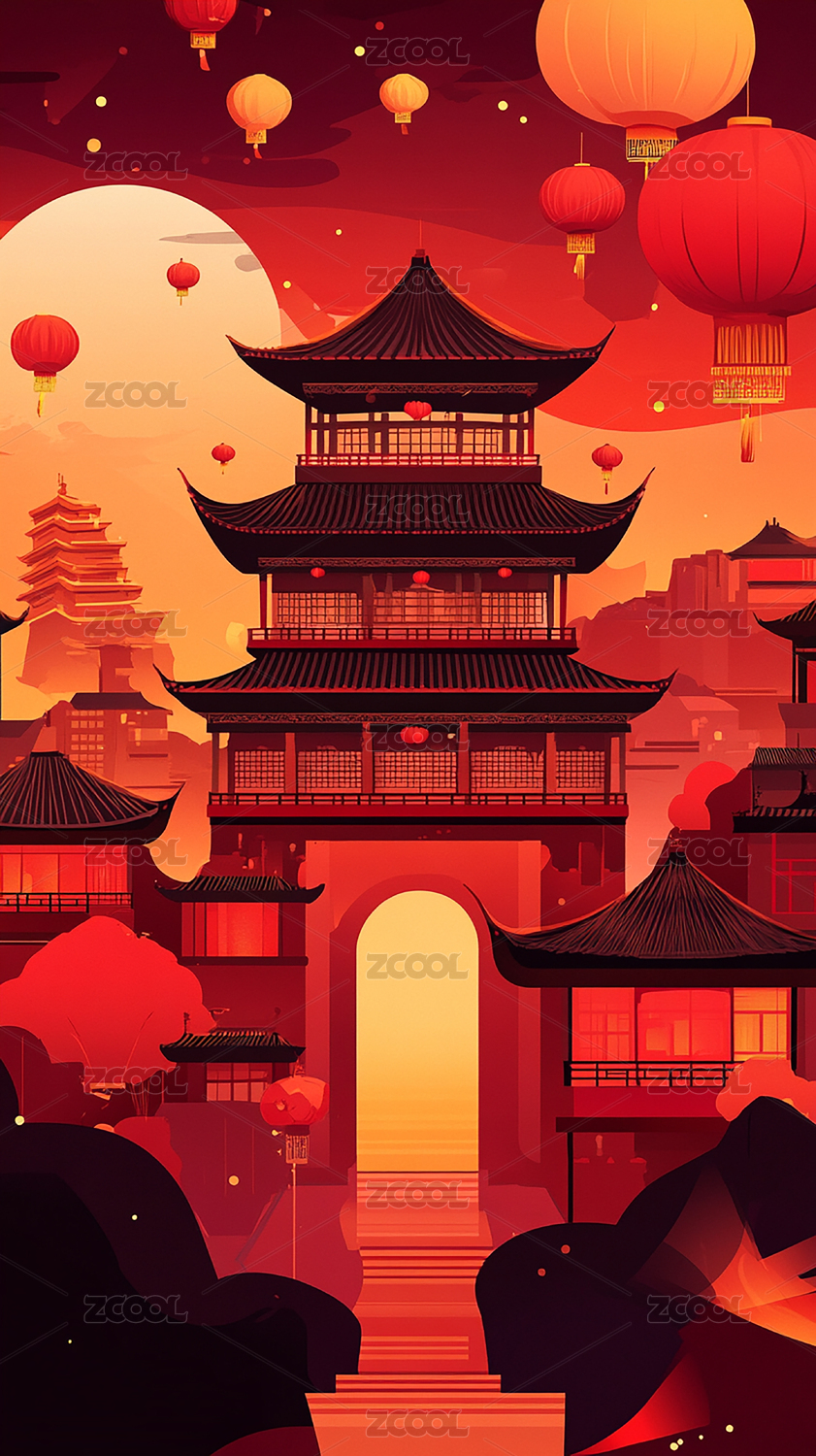 无人,插画,花,自然,背景,天空,活力,风景,节日,中国文化
