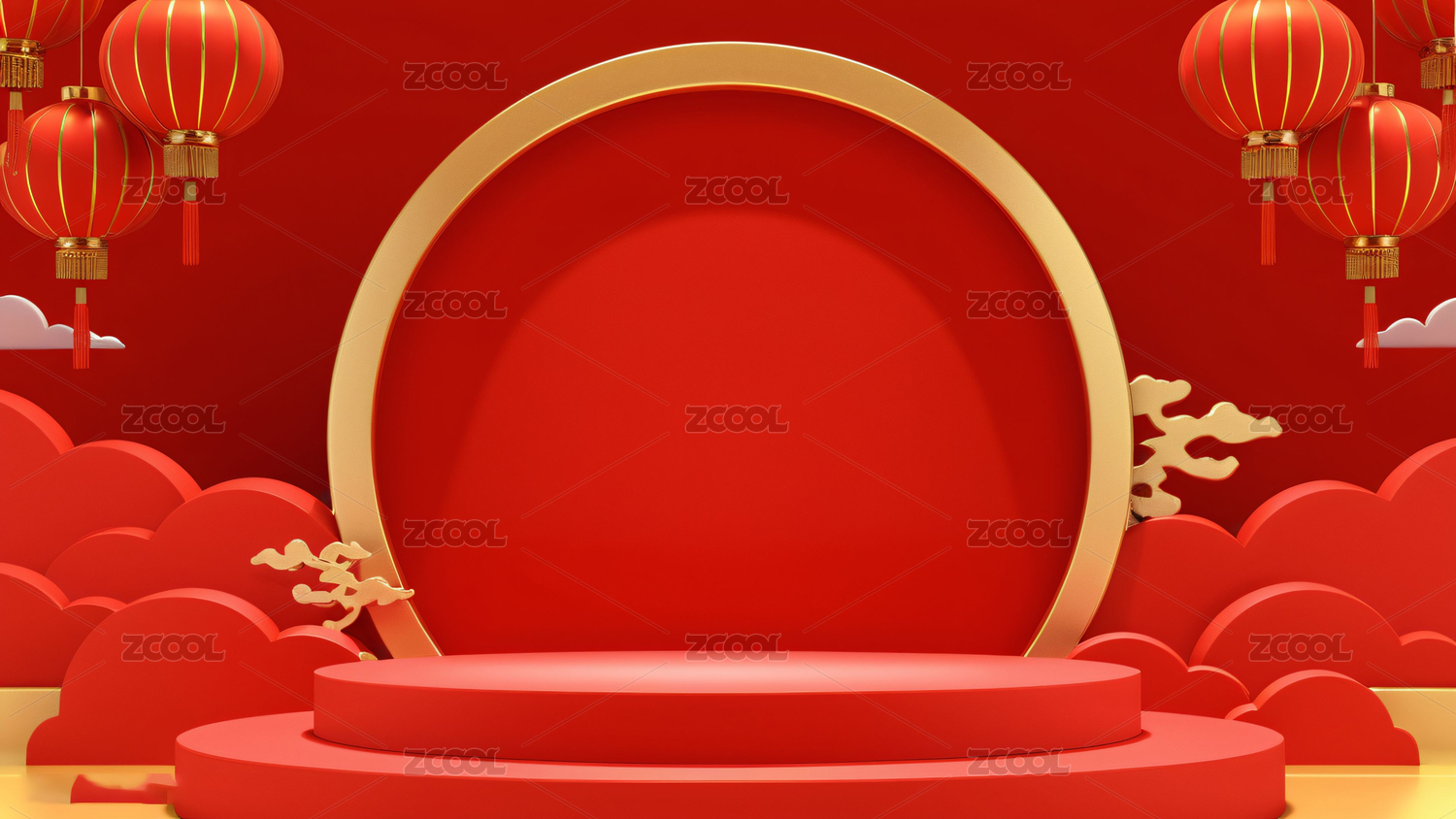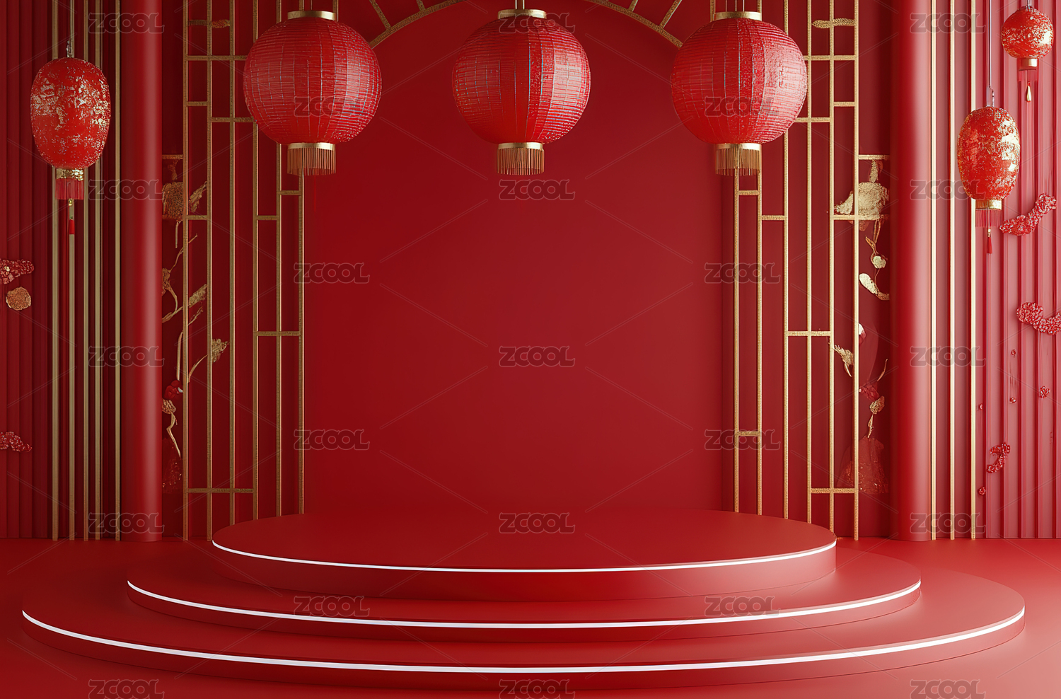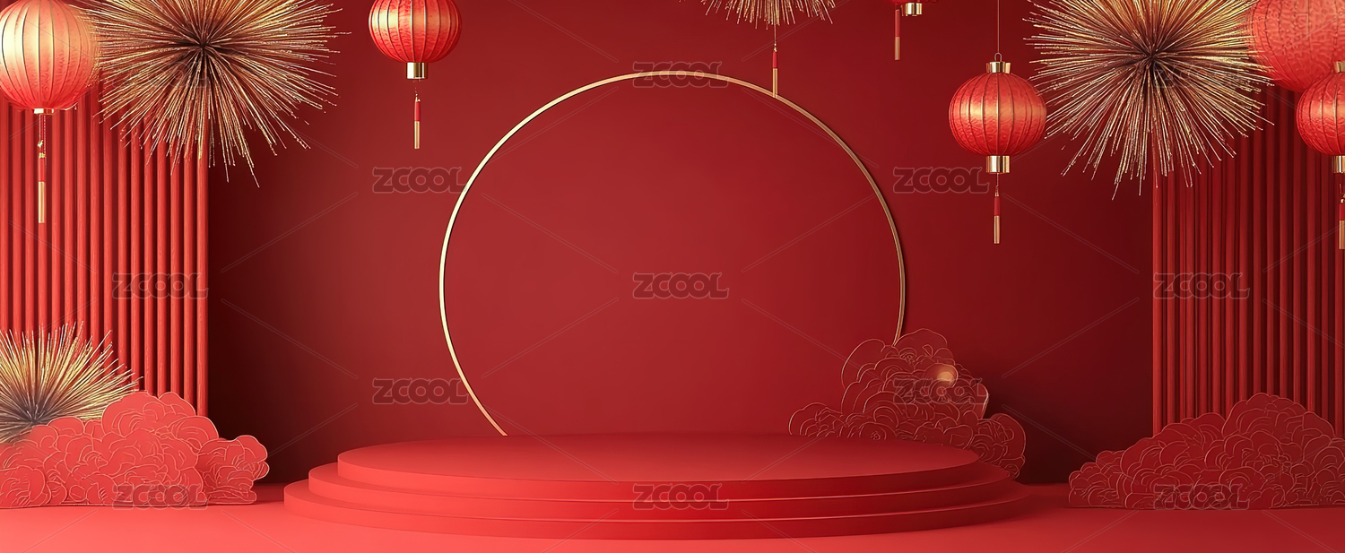 电商红色新年喜庆中国风背景-三维渲染