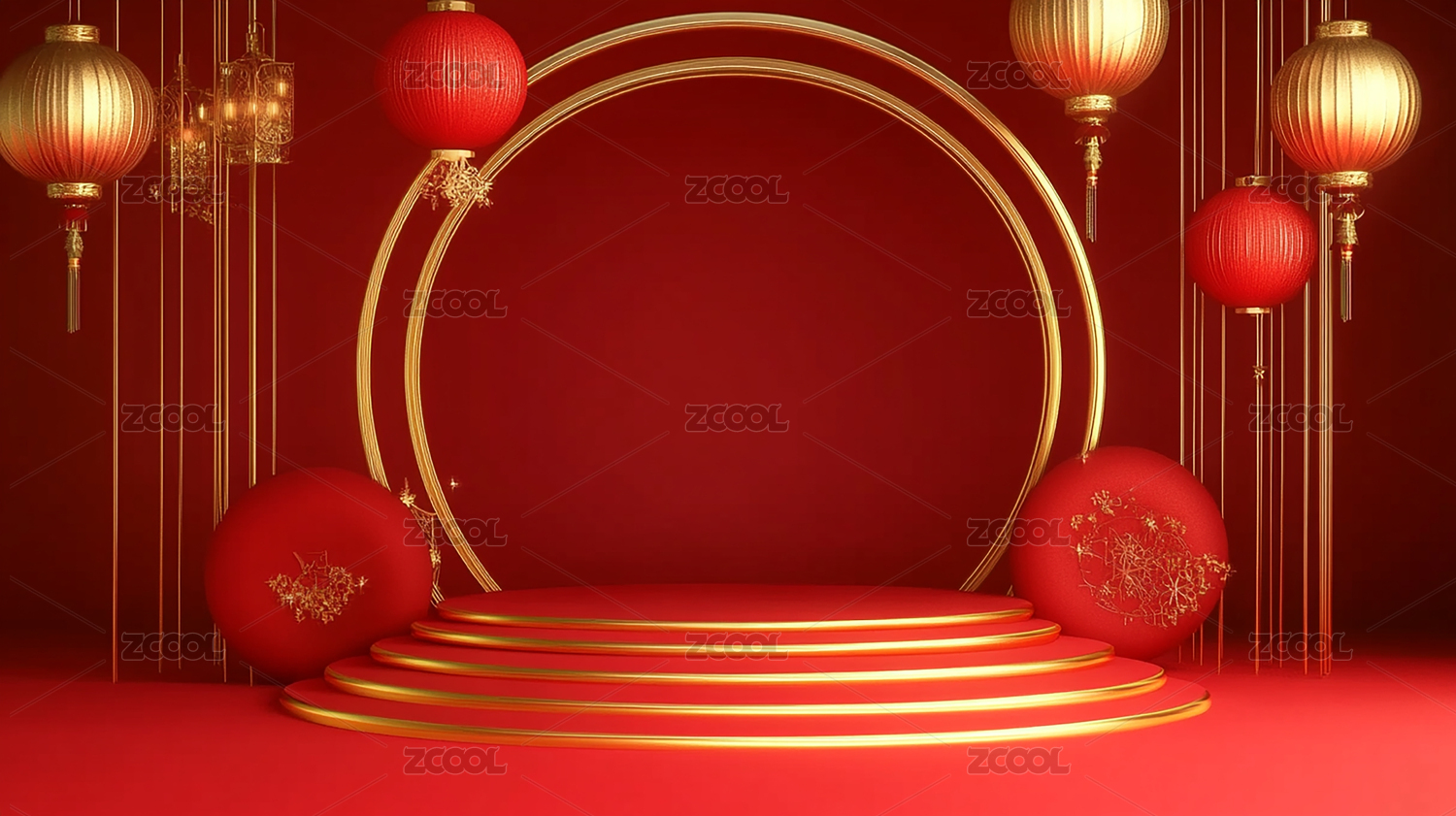 红金色国风灯笼展台背景图