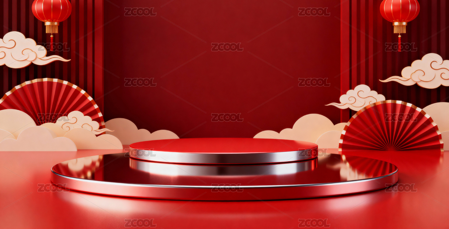 3D简约中式红色电商购物产品展台背景