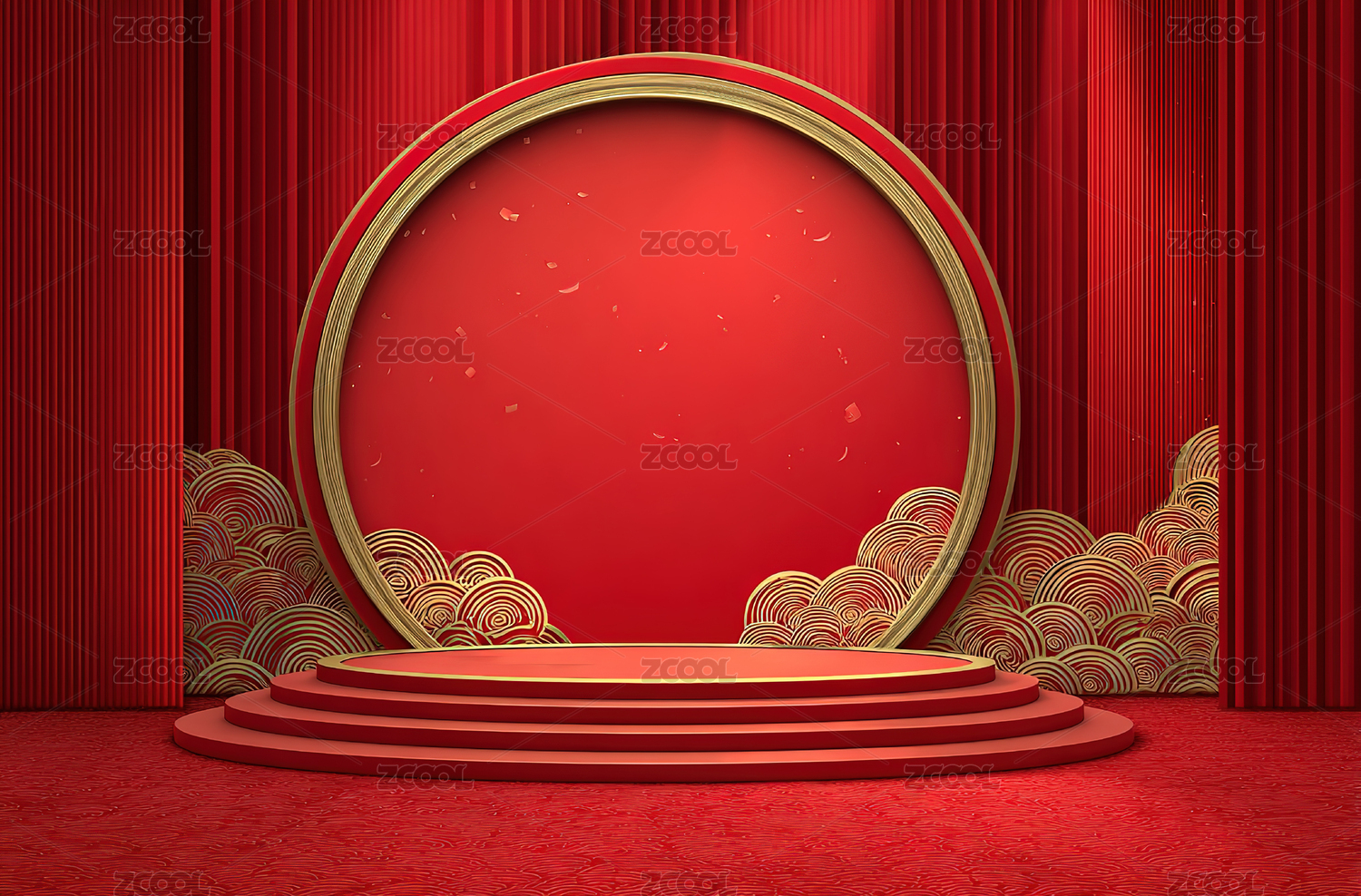 红色国风展示场景图