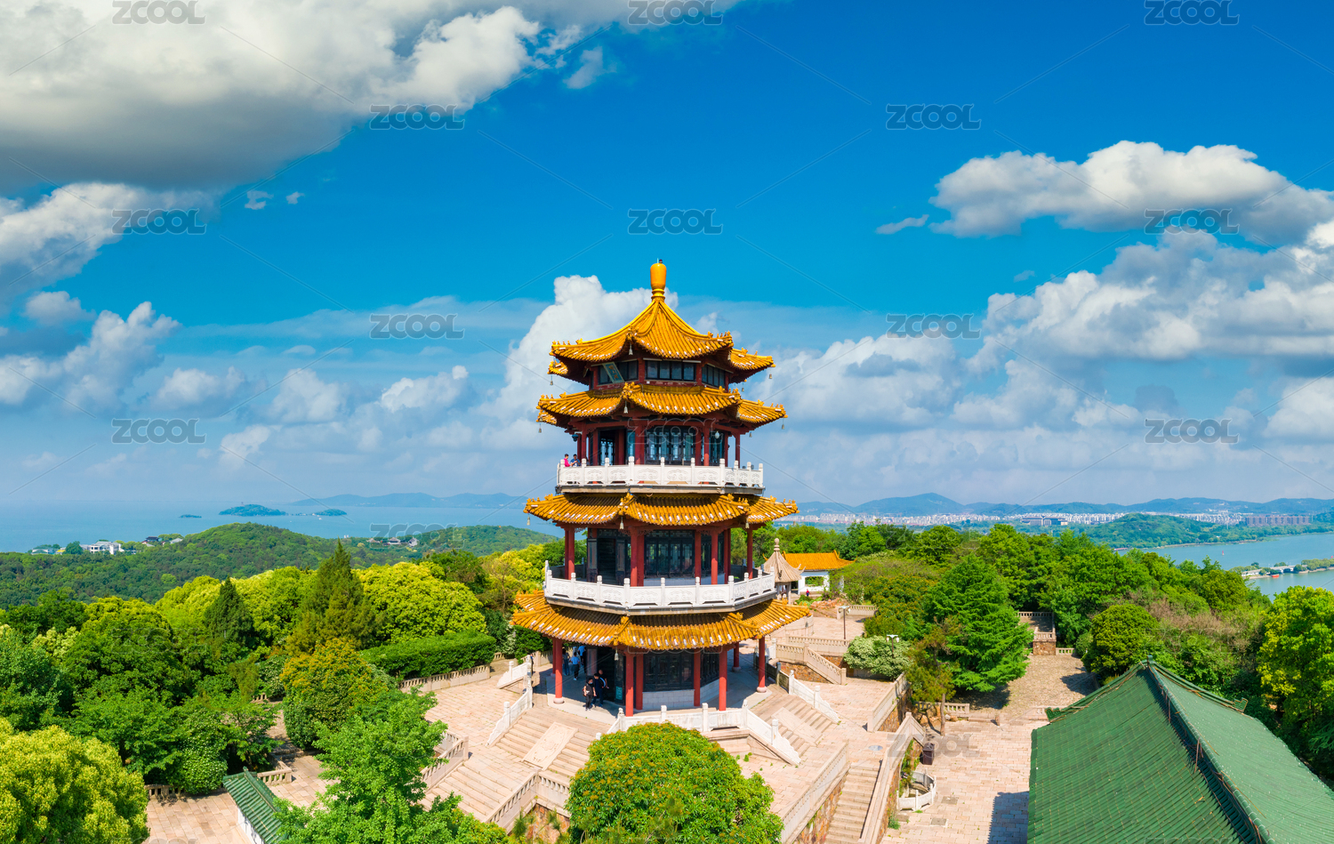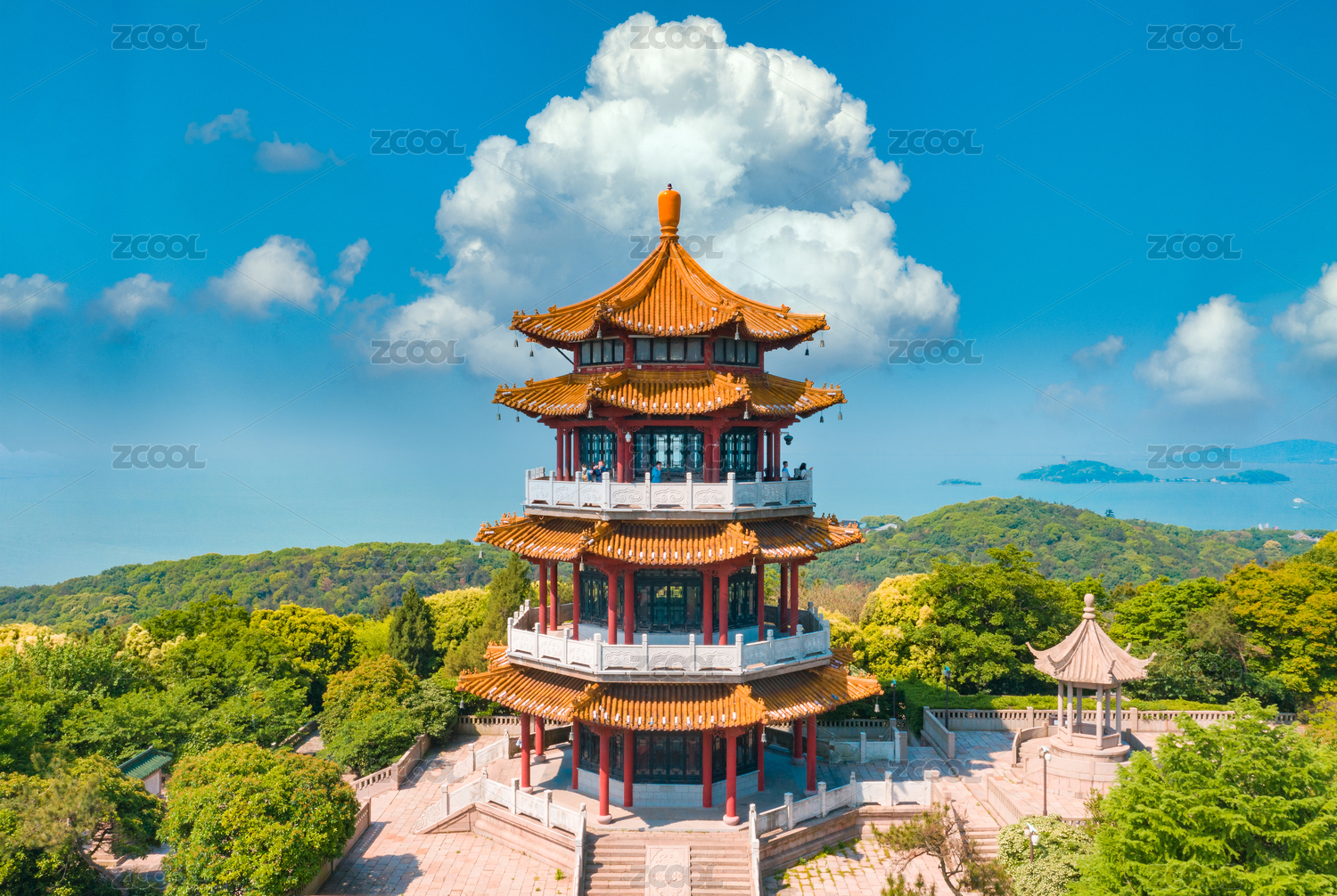 中国江苏省无锡市太湖鼋头渚峰顶塔楼