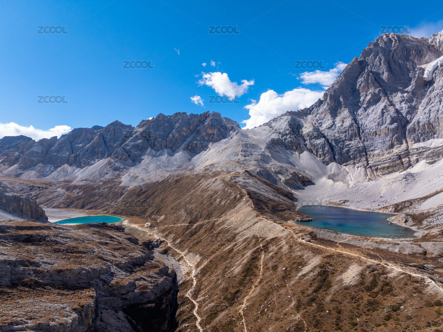 航拍稻城亚丁五色海和牛奶海,四川川西甘孜