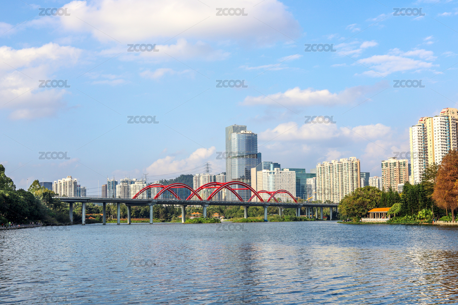水,天空,白天,桥,拱桥,河,建筑,深圳,洪湖公园,彩虹桥