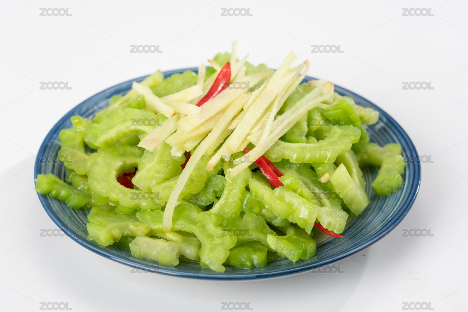盘子里的素炒苦瓜