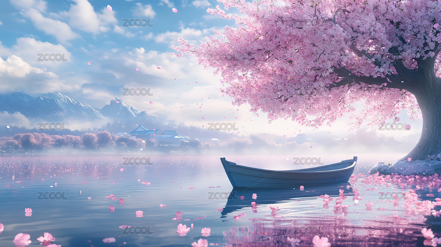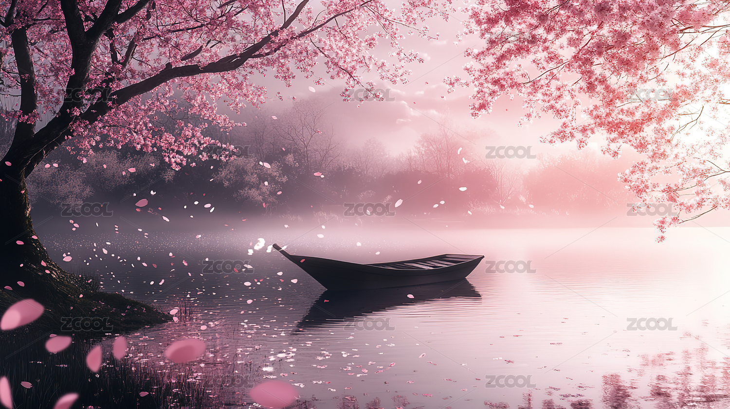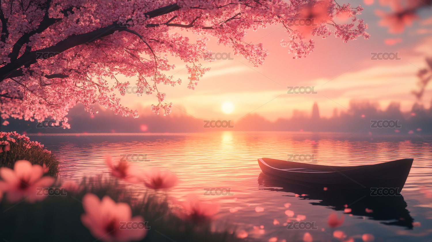 中国风樱花湖畔