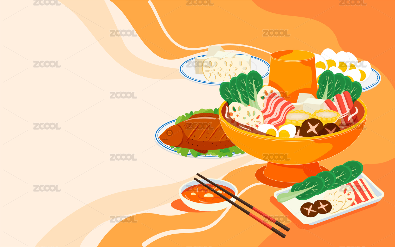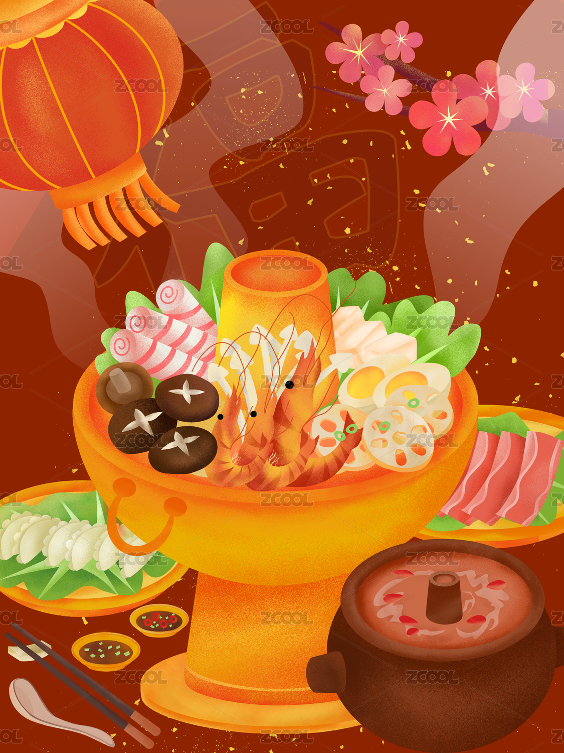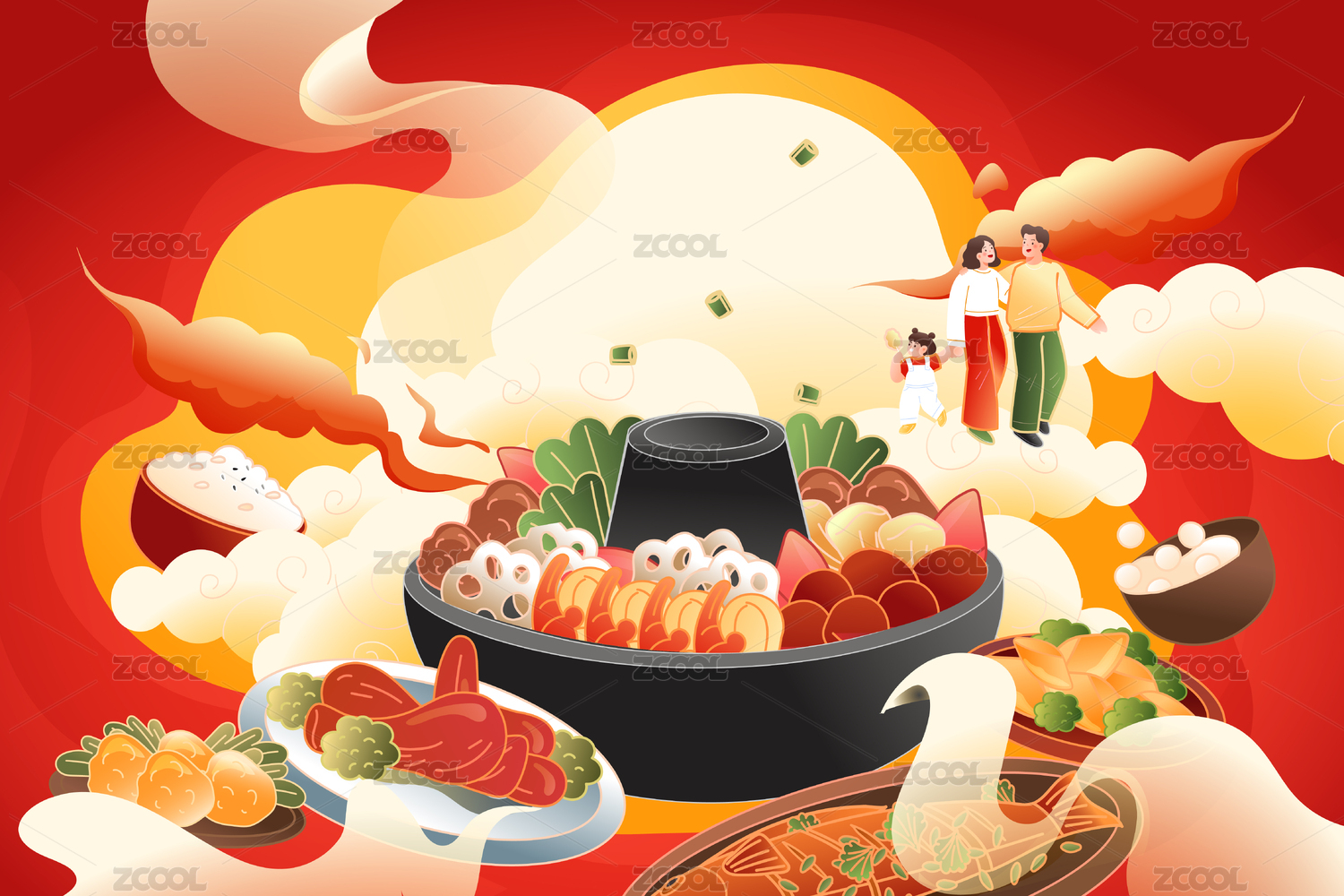 2023春节聚餐团圆新年年夜饭吃火锅插画