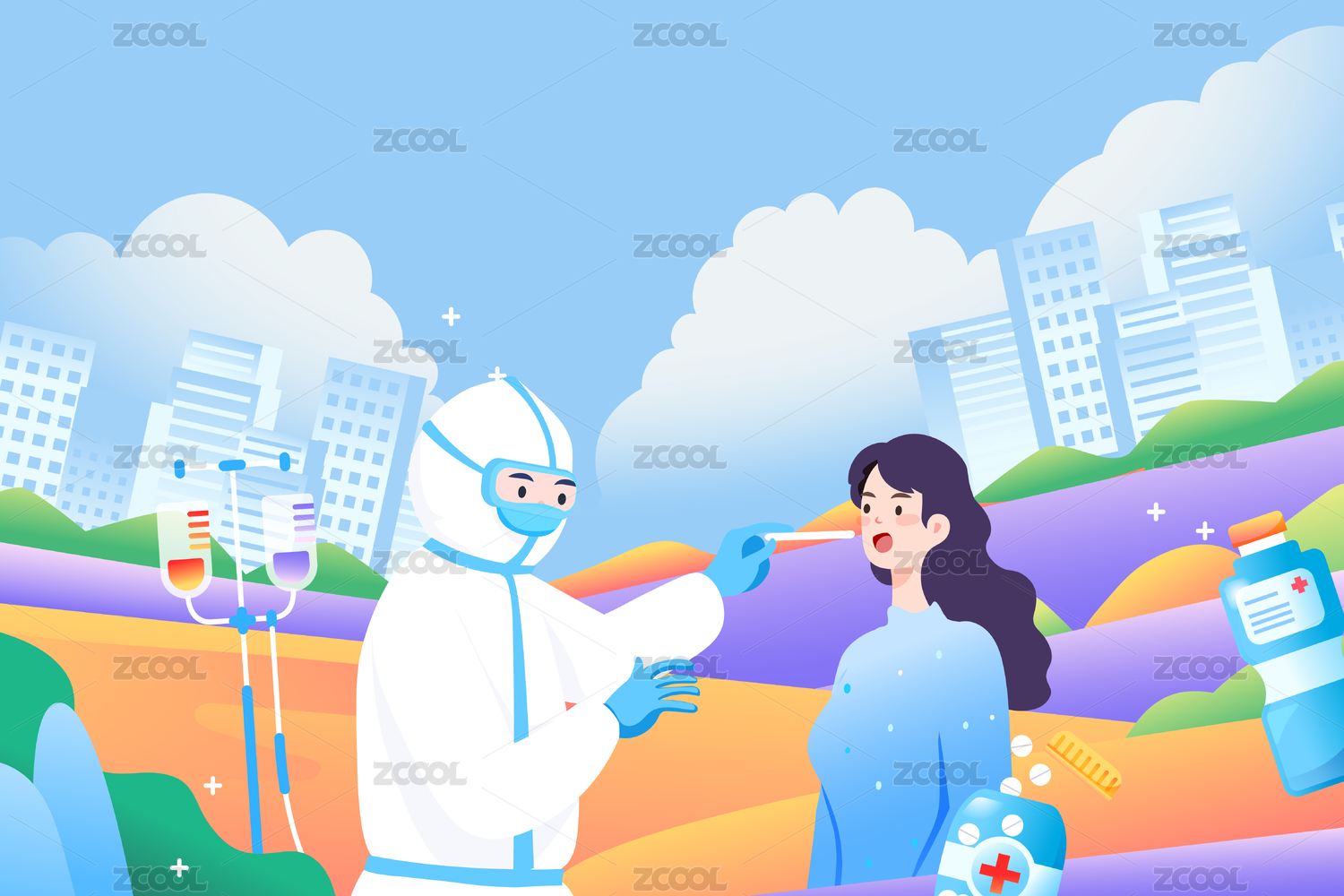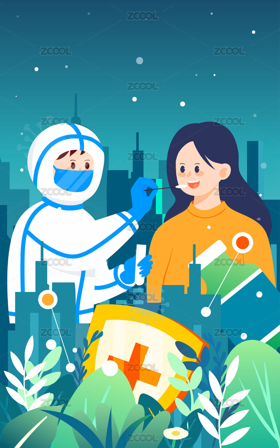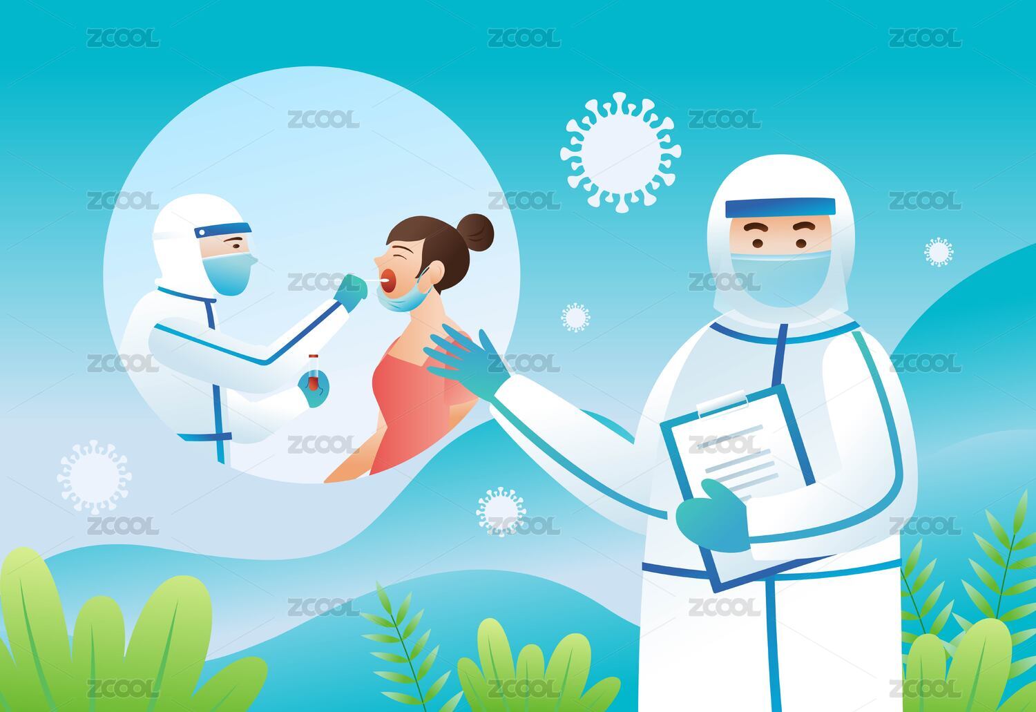 抗疫医生核酸检测插画医护人员幸苦检查海报