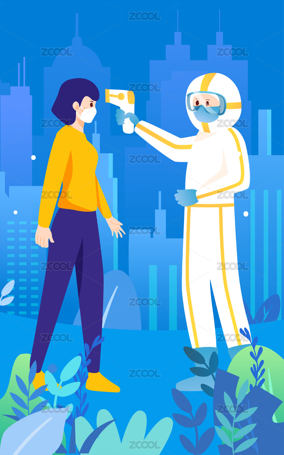 抗疫防控情人物量体温插画健康安全抗疫海报