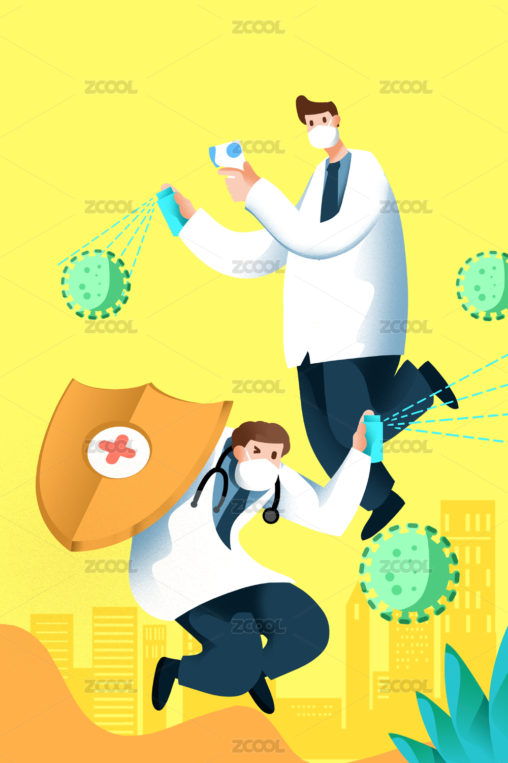 医生抗疫插画新冠肺炎疫情医护人员幸苦海报