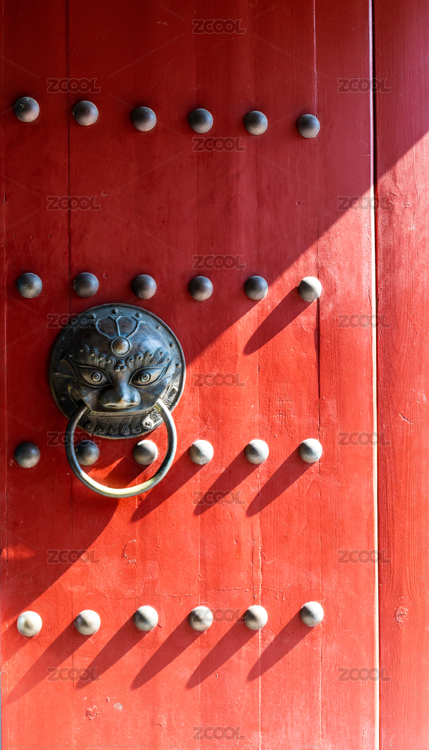 木,木门,门,传统,建筑,门钹,门环,复古,金色,红色