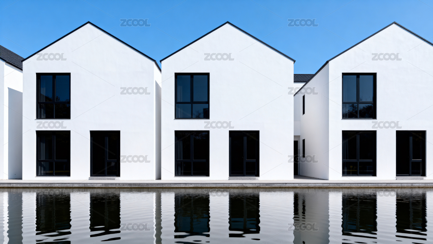 简约白屋水景倒影