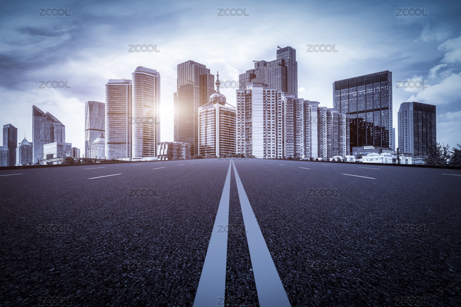 重庆建筑群景观和空的沥青道路在夏天日落时