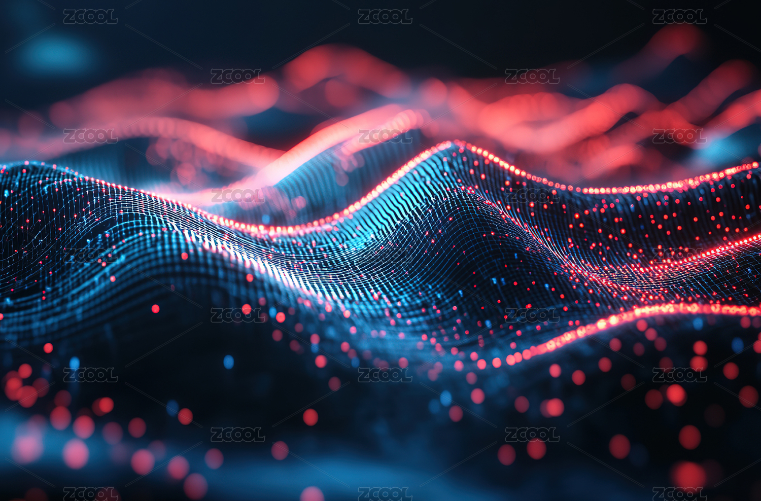 抽象科技背景波浪波纹曲线未来大数据流3D