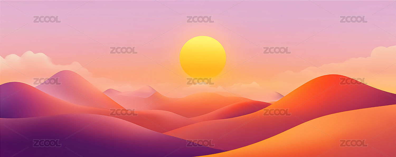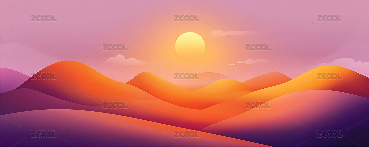 落日余晖洒在连绵起伏山丘上呈现出温暖色调