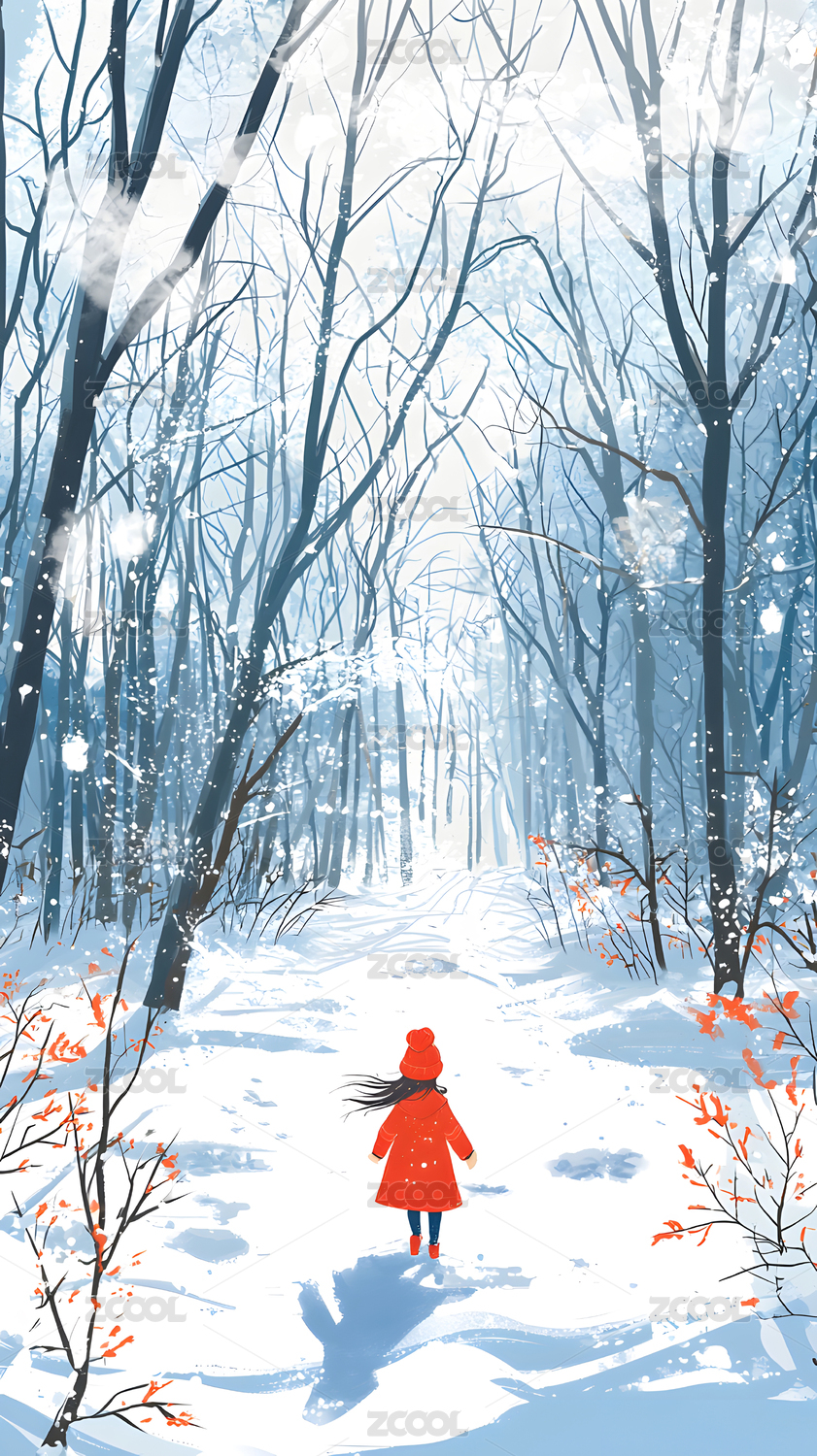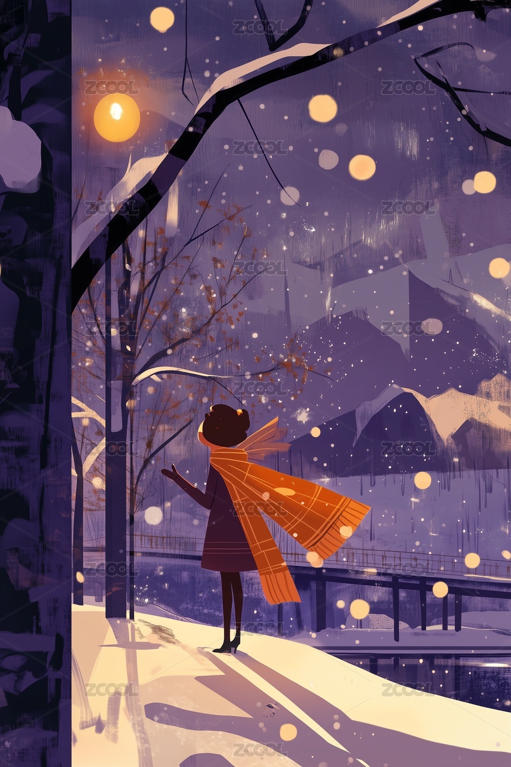 治愈,手绘,插画,风景,温暖,故事,配图,日历,节气,女孩