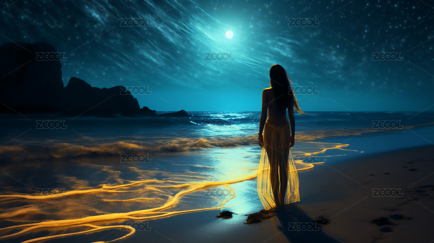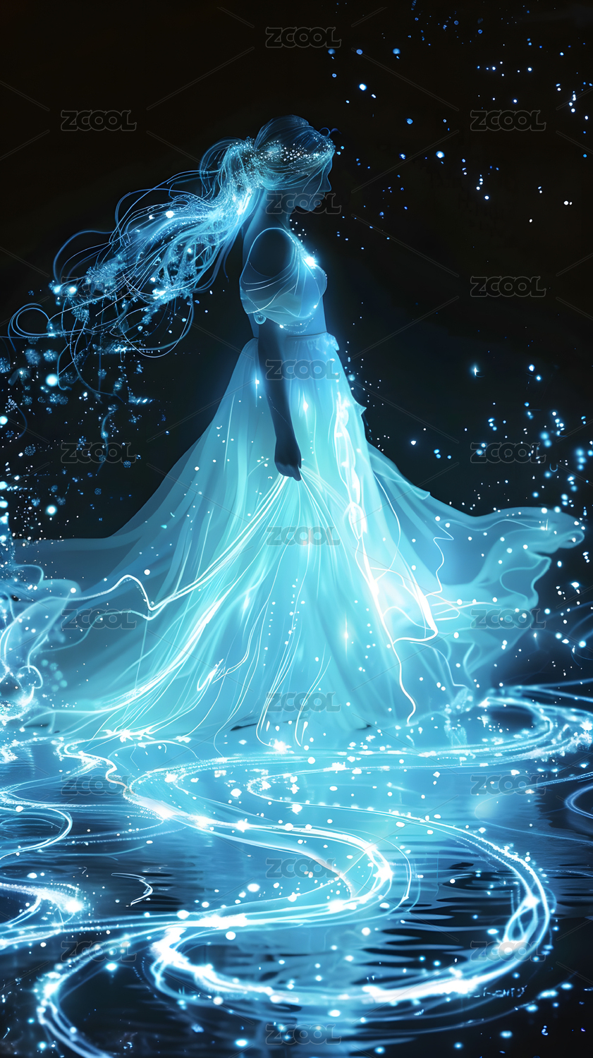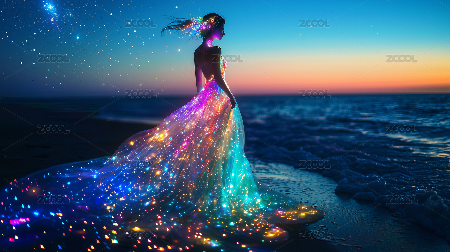 3D,风格,新娘,婚礼,婚纱,拍照,摄影,艺术,月亮,炫光