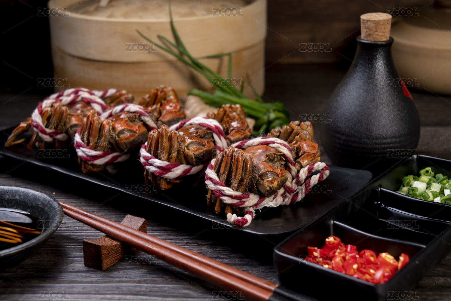 清蒸大闸蟹,六月黄,河蟹,螃蟹,河鲜,美味,葱,姜,酒壶,酒