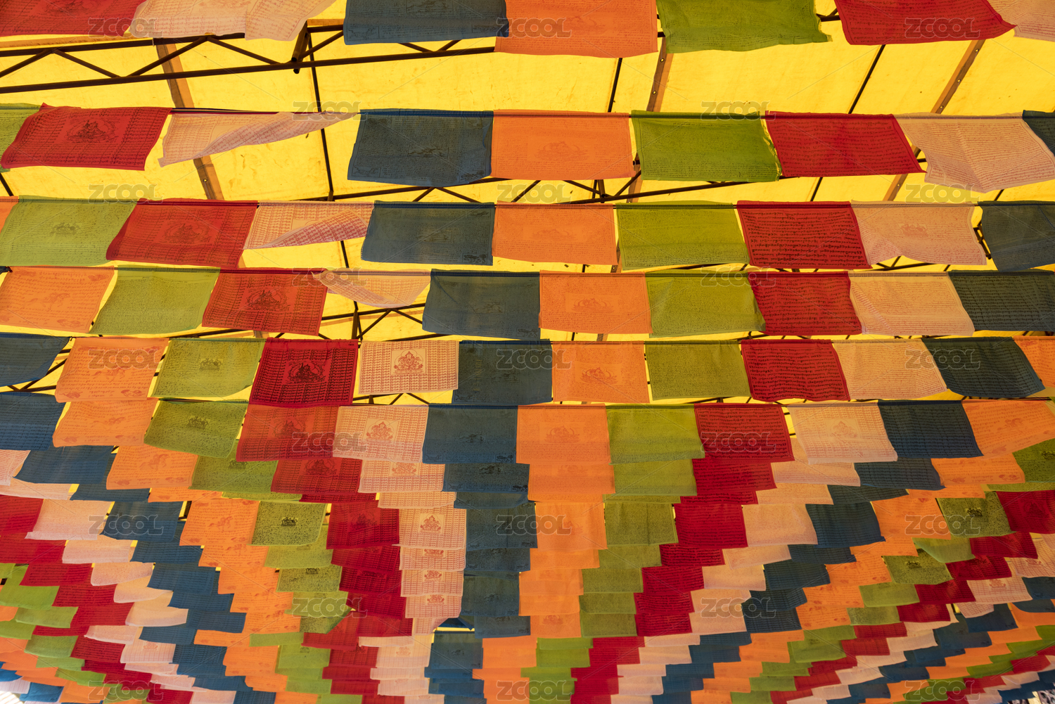 中国西藏的高原上,五彩斑斓的经幡随风飘扬