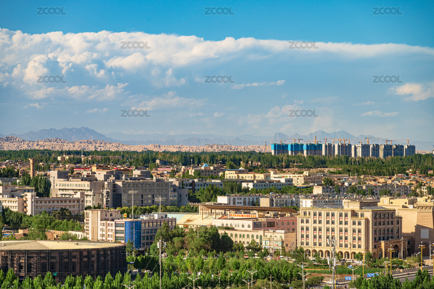 中国新疆喀什市中心城市全景天际线