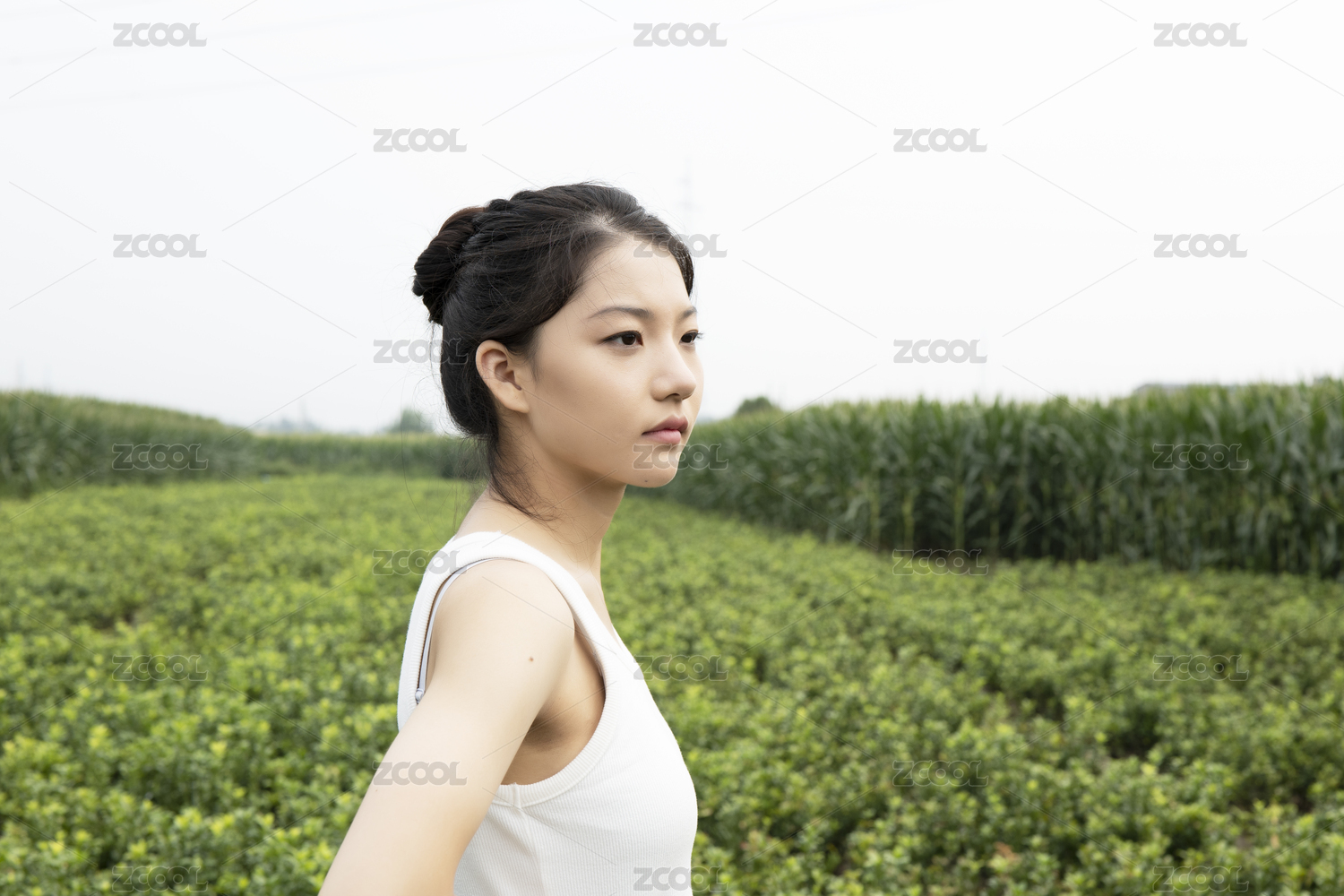 侧面的田间略显稚嫩的女孩