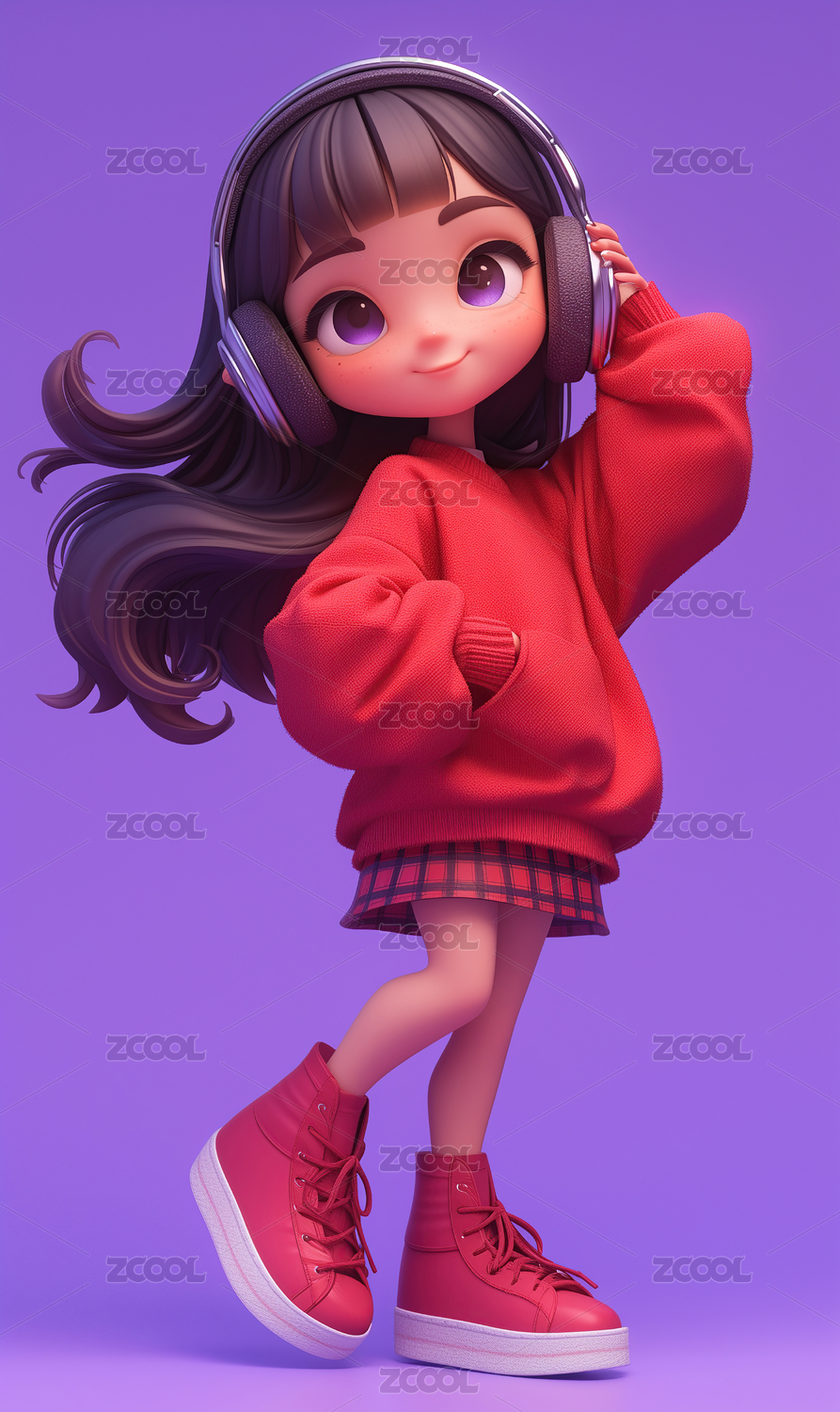 3D渲染可爱卡通女孩三八妇女节人物插画