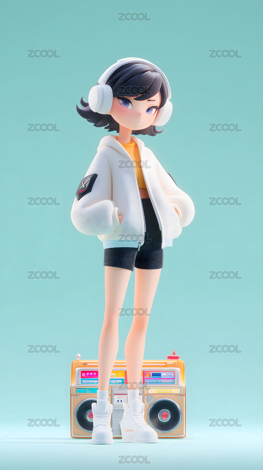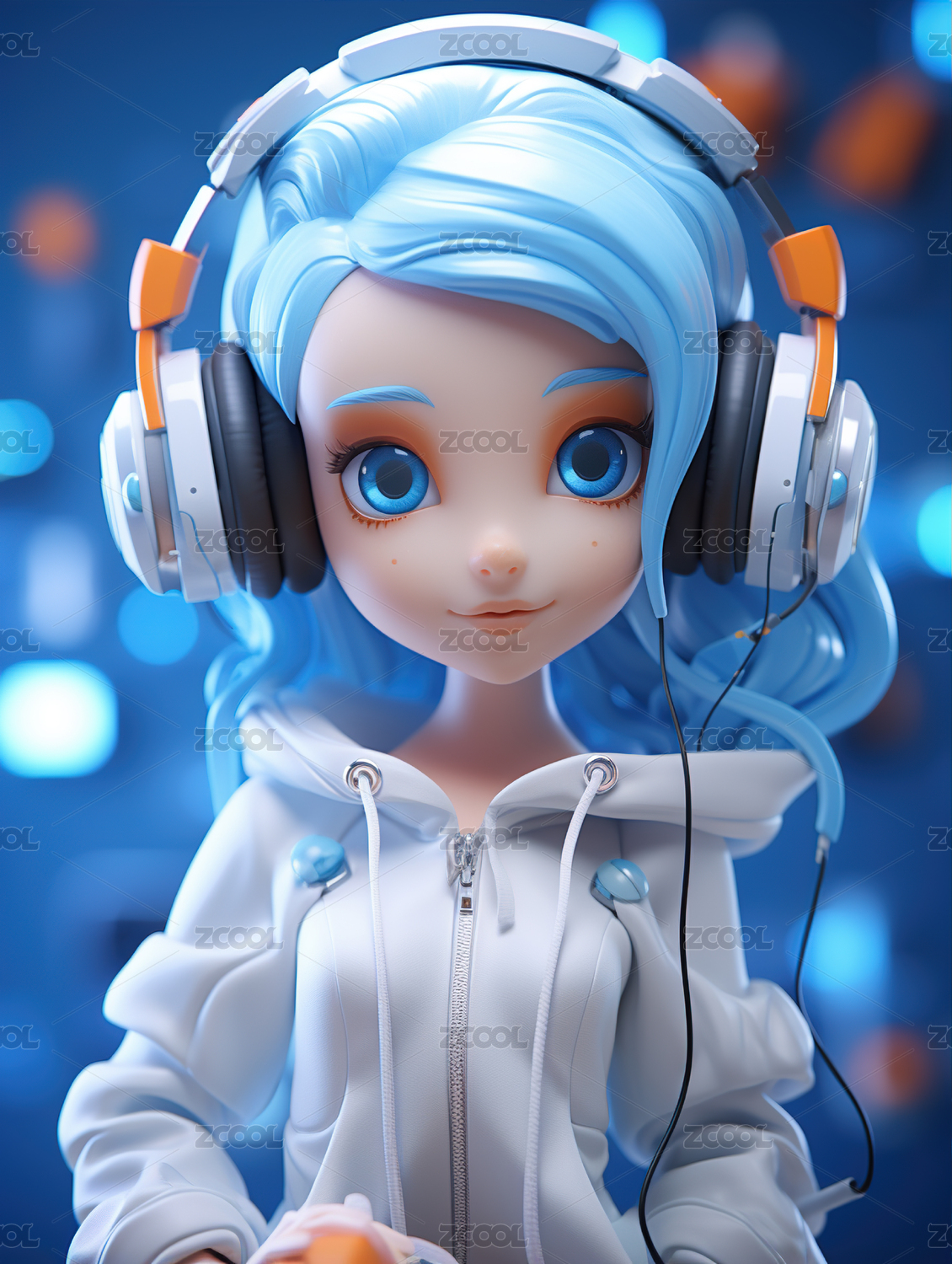 女孩,戴着耳机,可爱,漂亮,时尚,酷,音乐,娱乐,客服,科技