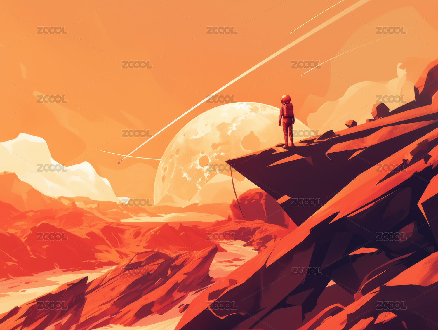 沙漠荒漠沙丘日落云层弯月夕阳行人