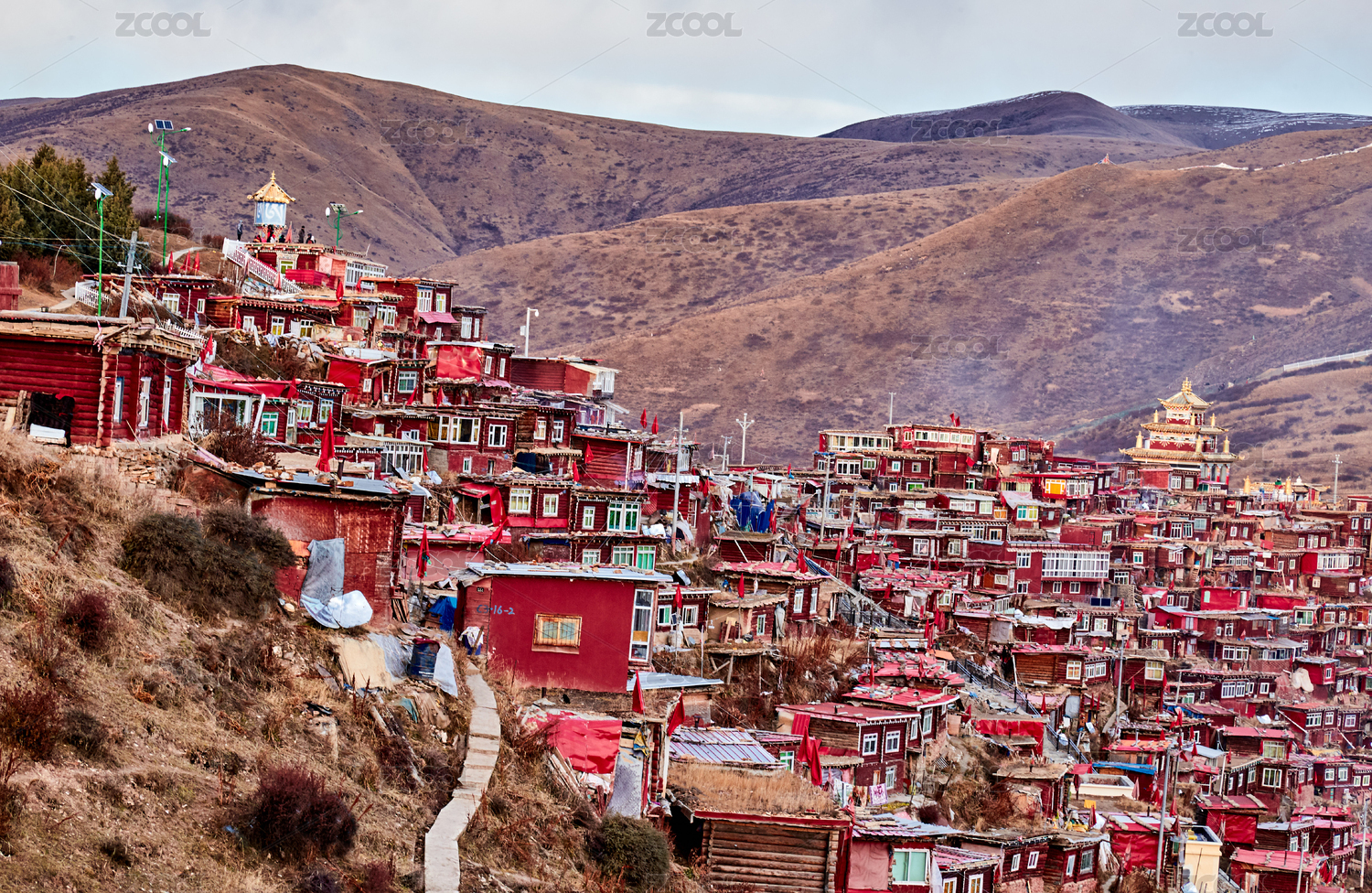 东亚,中国,亚洲,佛学院,佛教,佛舍,依山而建,冬天,冬季,喇荣寺五明佛学院