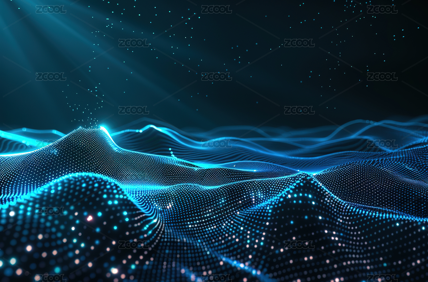 蓝色,科技,光粒子,波浪,起伏,炫光,颗粒,悬浮,背景,光线