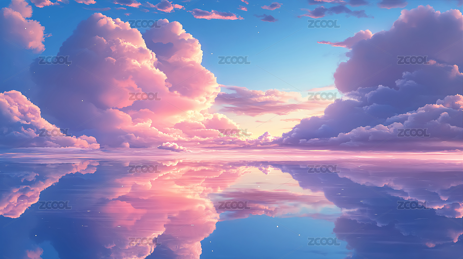 天空之镜,梦幻,浪漫,宁静,阳光,天空,云朵,水面,壁纸,倒影