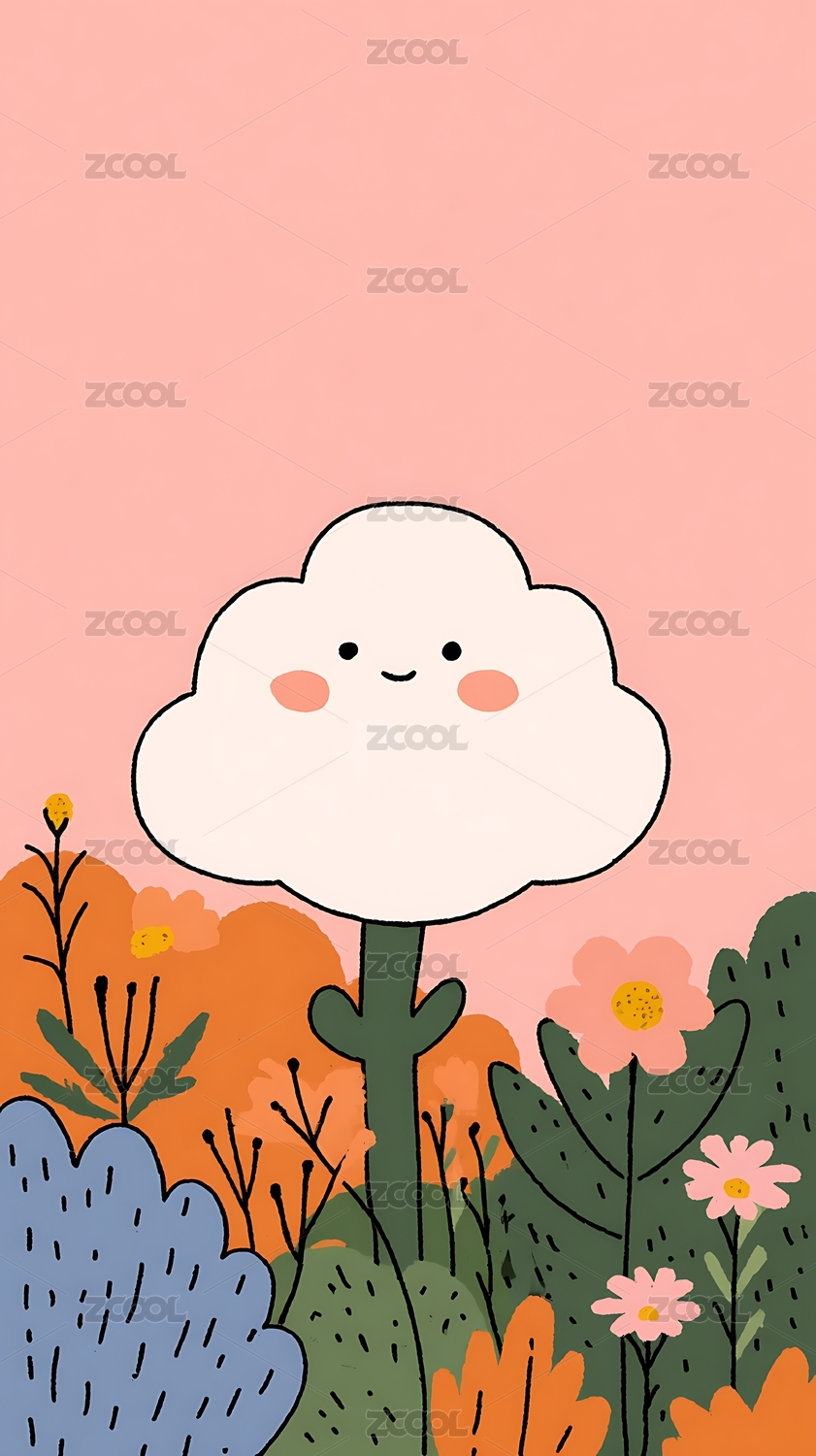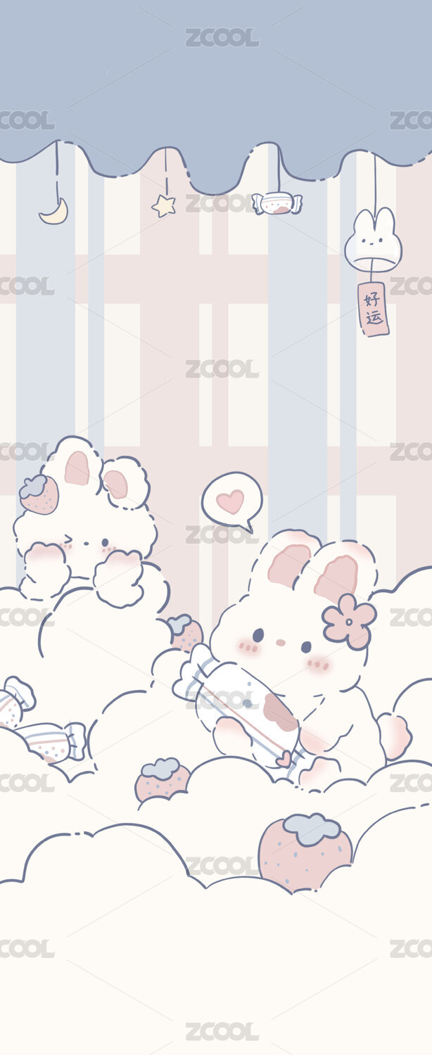 可爱小兔子手捧鲜花粉色背景治愈壁纸