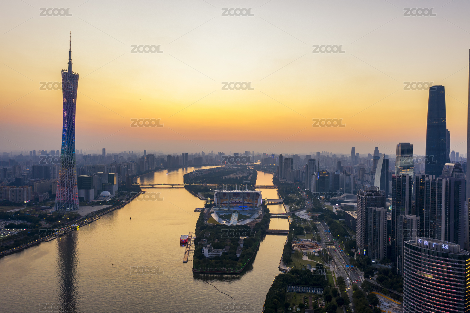 航拍视角鸟瞰广州珠江新城城市风景线条