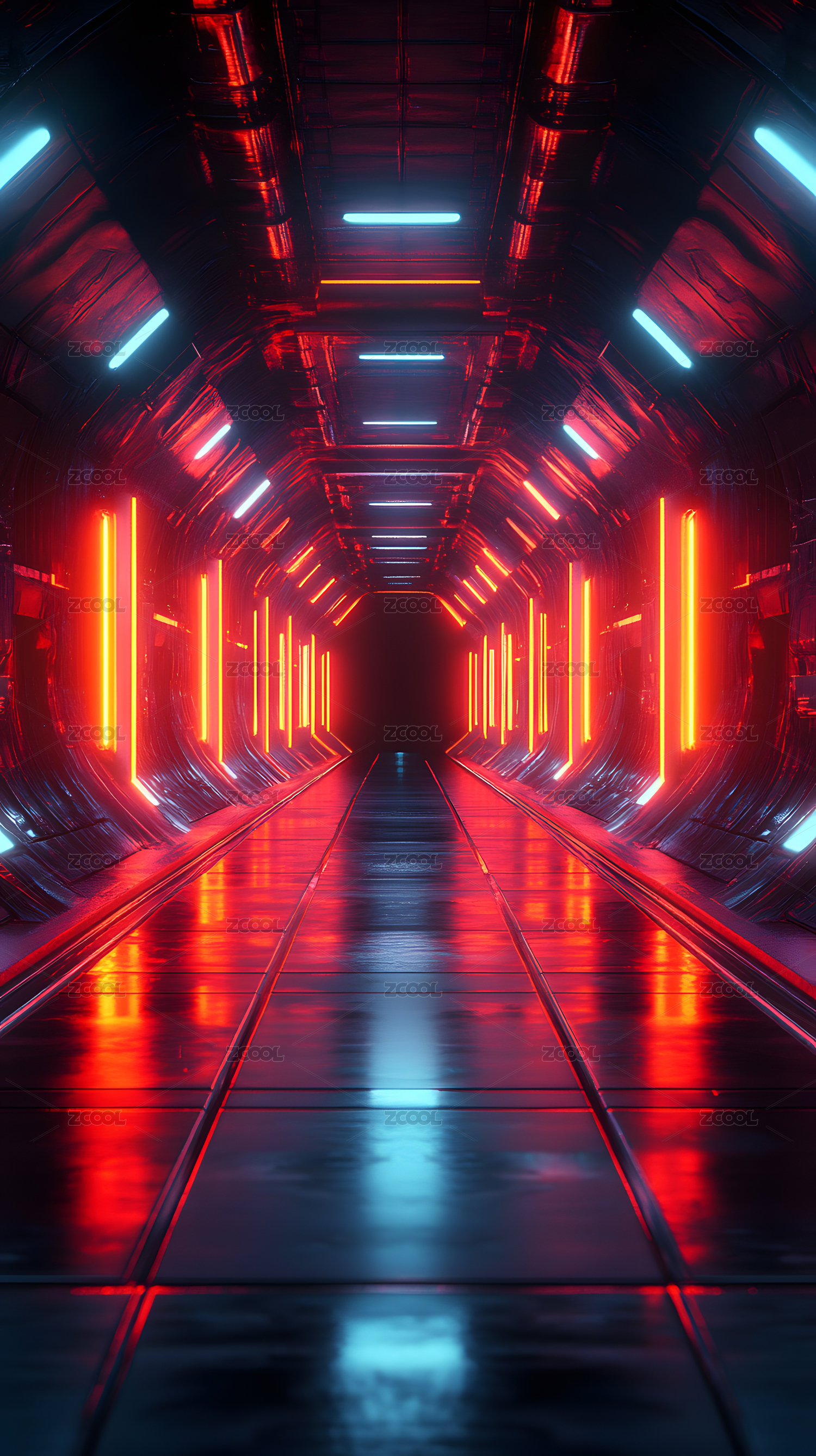 抽象科技感荧光色隧道走廊赛博朋克3D插画