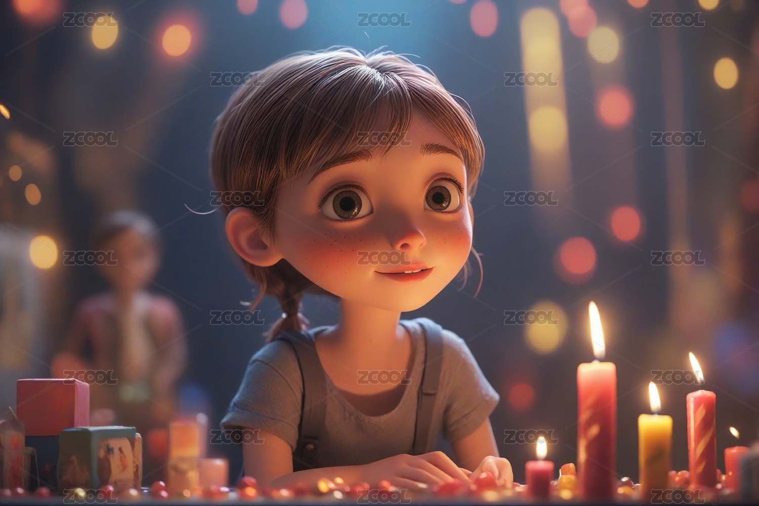 3D挂满灯笼欢度春节的的卡通可爱男孩