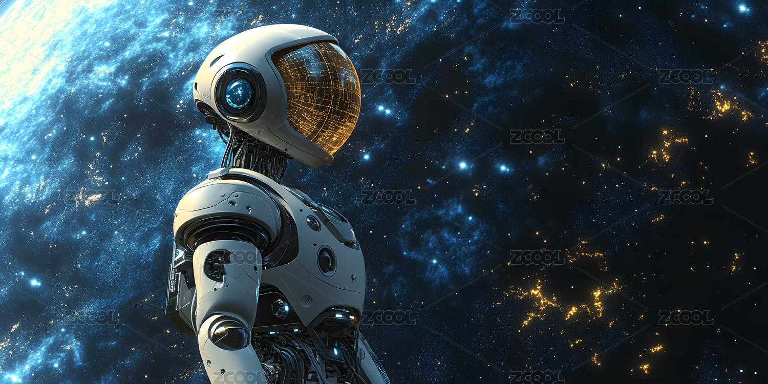 机器人,星空,月球,城市,灯光,探索,宇宙,蓝色,光斑,机械