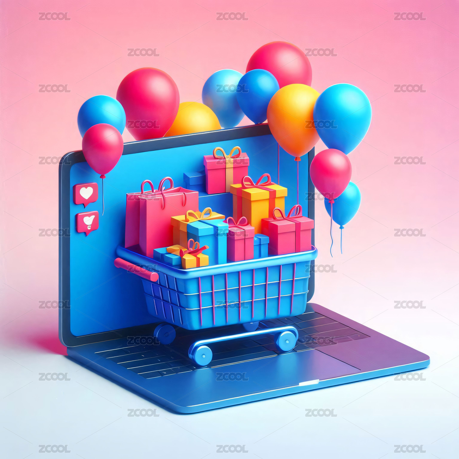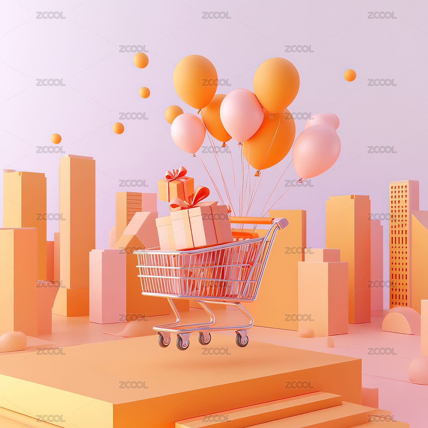 手机,购物,电商,促销,卡通,气球,礼物,购物车,粉色,背景